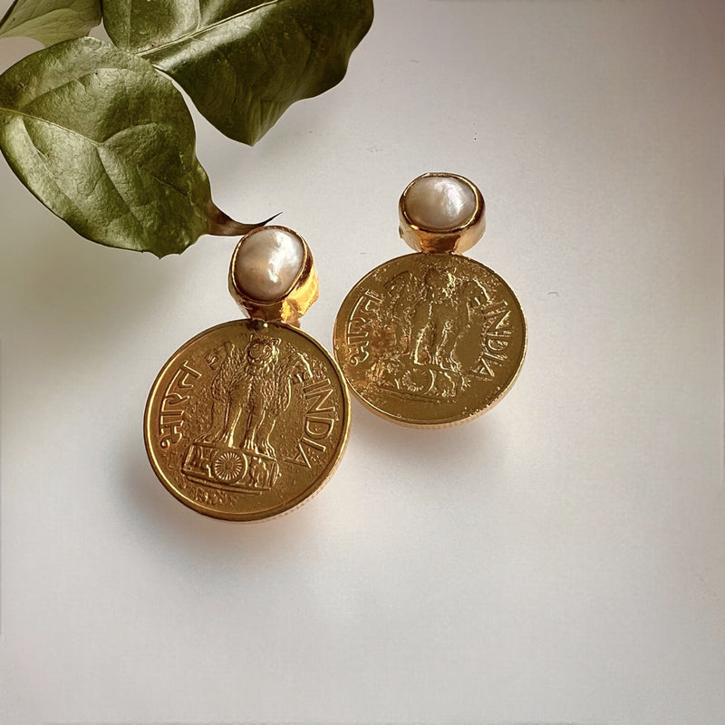 COINED PEARL 18 KT GP PLATING HANDMADE EARRING ER620