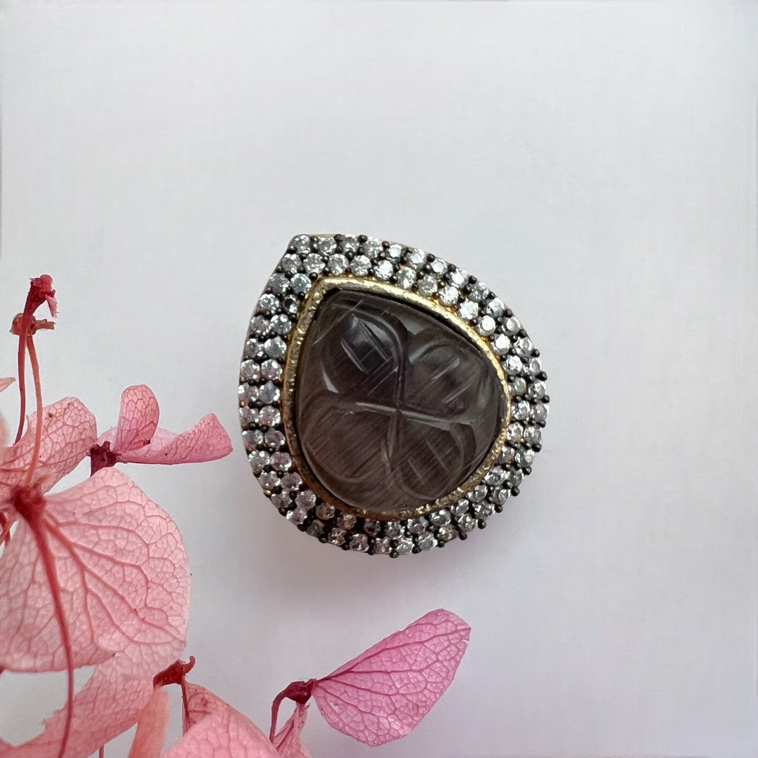 DROPLET CARVING STONE WITH AD STONE STUDS ER164