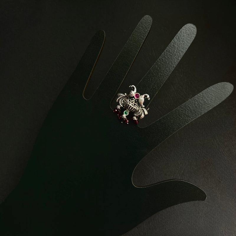 PEACOCK FLORAL OXIDIZED FINGER RING R73