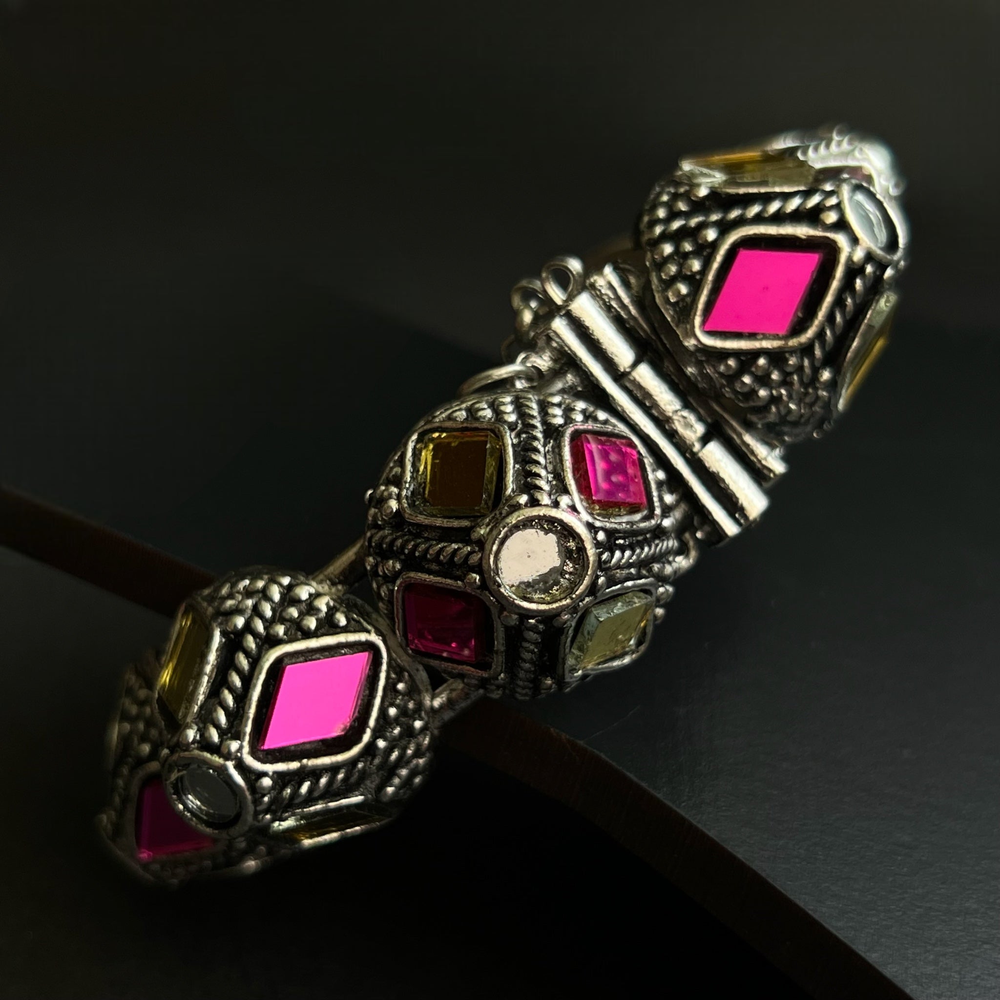 Discover the pinnacle of luxury fashion with the DHISHA BLACK POLISH HAND CUFFS/BRACELET/BANGLES/KADAS BR47. These bangles feature exquisite natural stones, known for their timeless elegance and unmatched artistry.