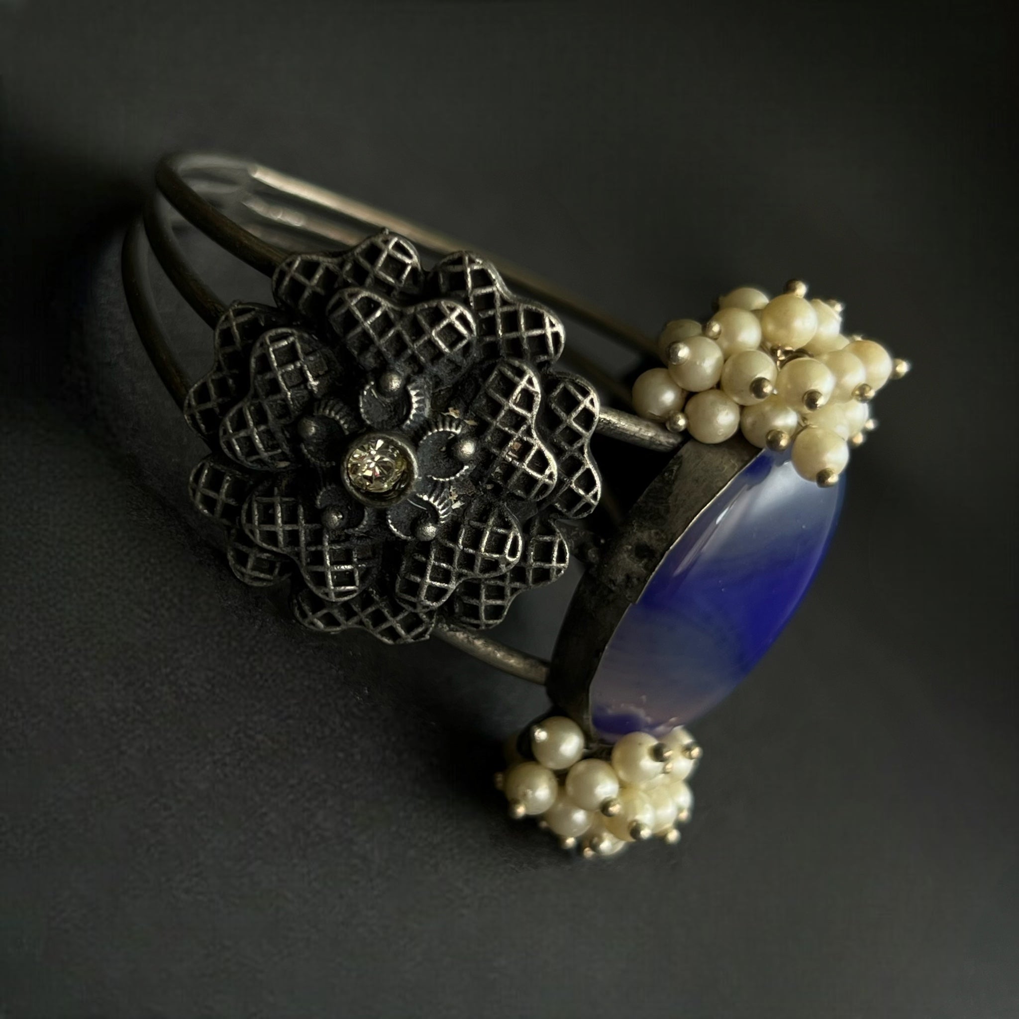 Explore the refinement and grace of MINUSHA BLACK POLISH HAND CUFFS/BRACELET/BANGLES/KADAS BR49, showcasing exquisite natural stones known for their timeless allure in the world of luxury fashion.