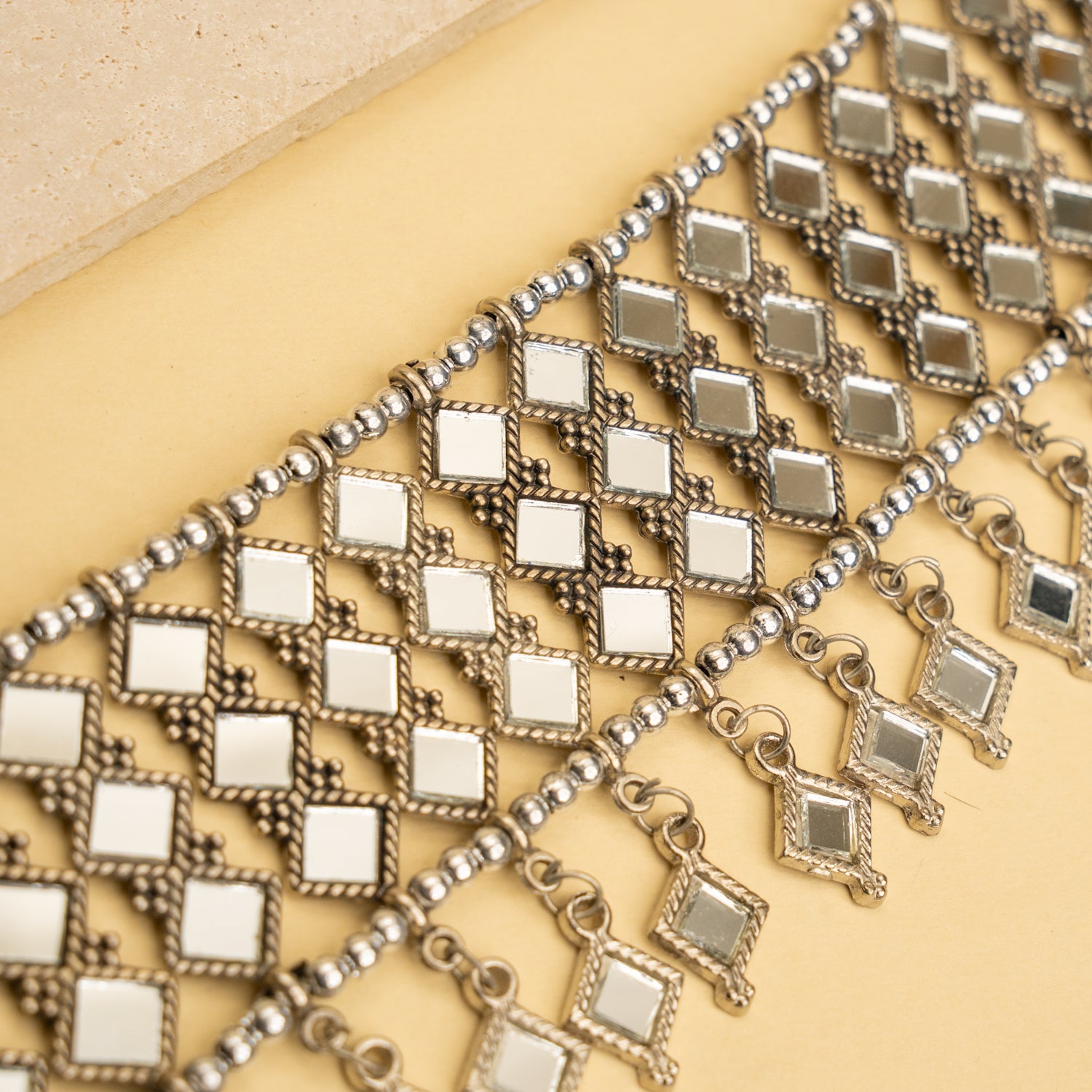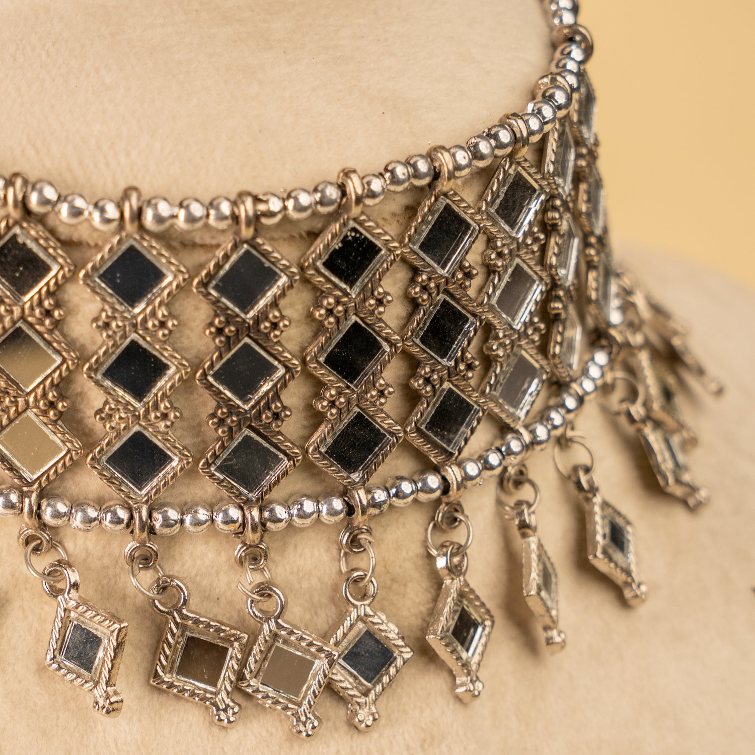 ISLA AFGHANI MIRROR RAW AND RUSTIC CHOKER WITH EARRINGS CH468