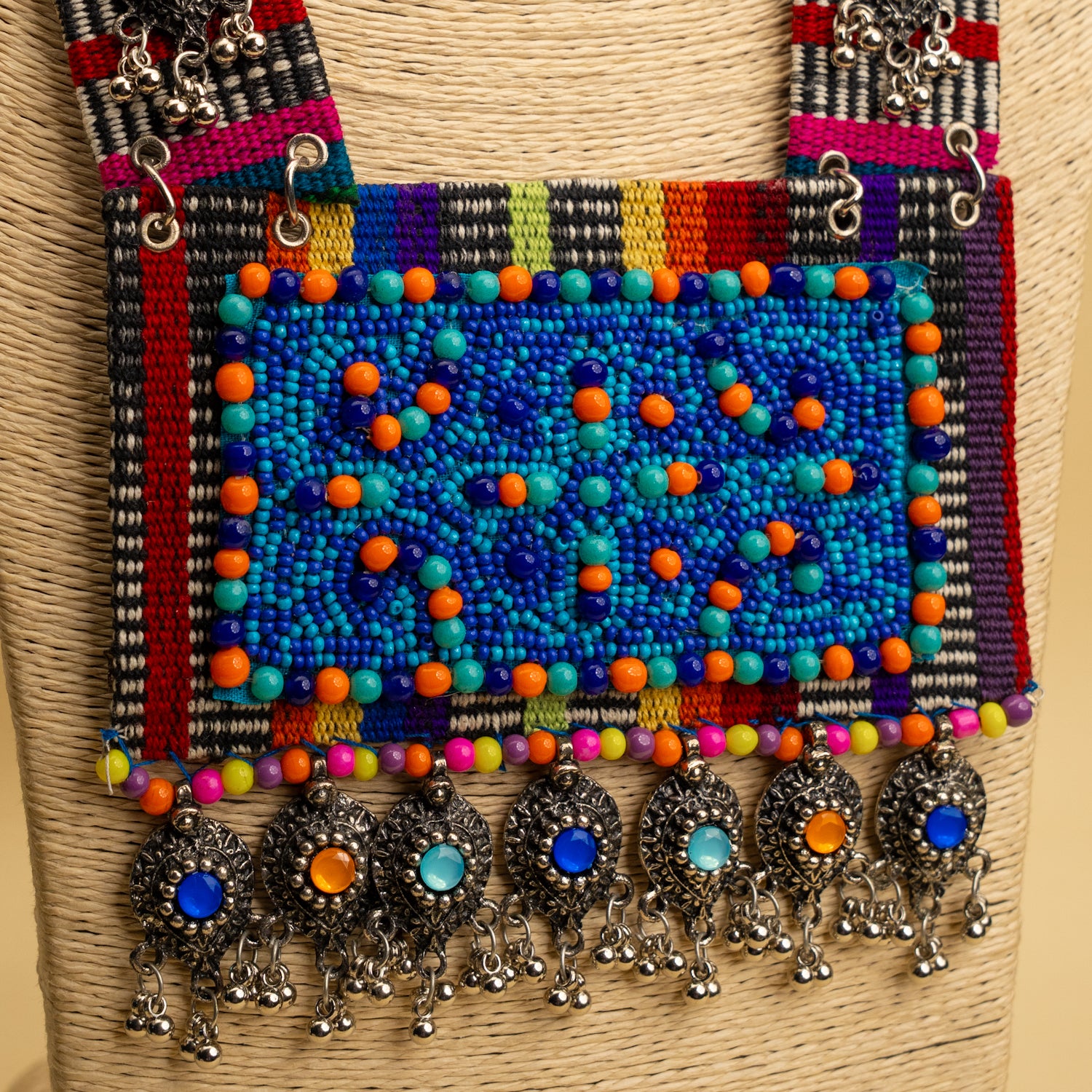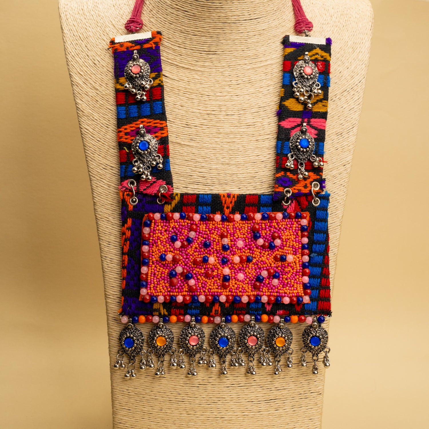 Experience the TATUM FABRIC AND BEADS HANDMADE AND HANDSTITCHED MALA/NECKPIECE ML128, where timeless elegance meets expert craftsmanship. Meticulously crafted from premium fabrics and beads, this necklace showcases detailed handstitching and superior artisanal skill. Each piece is uniquely handmade, combining traditional methods with modern aesthetics to deliver a refined accessory designed for lasting appeal..