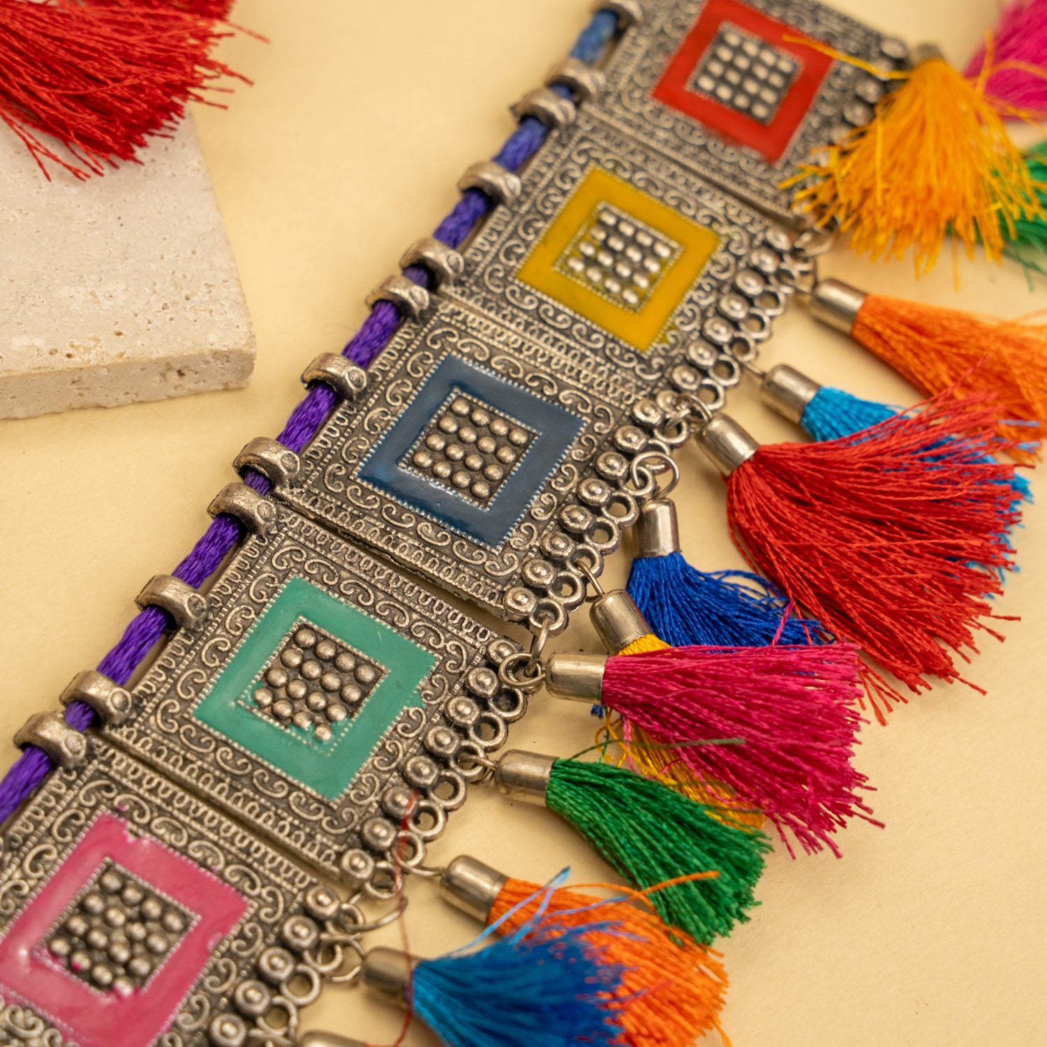 WILLOW AFGHANI THREAD WORK CHOKER WITH EARRINGS CH470