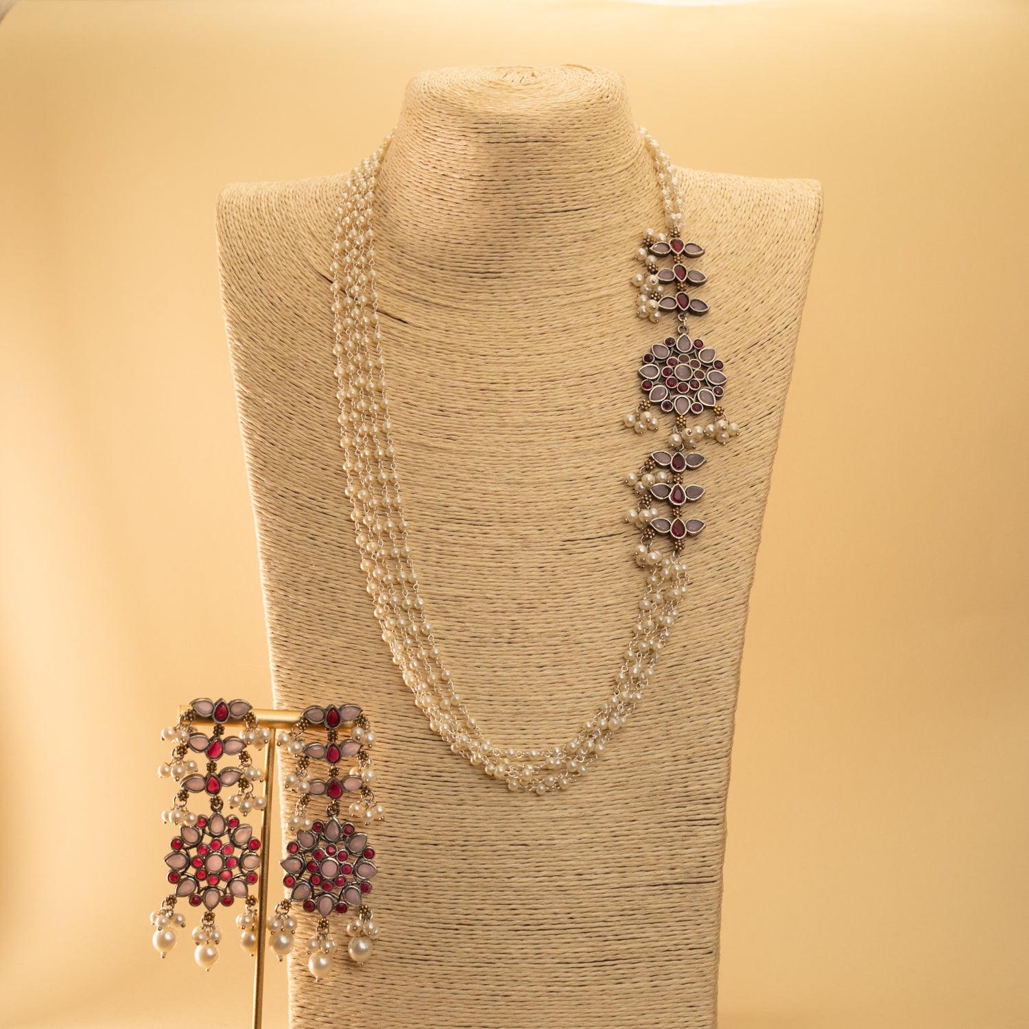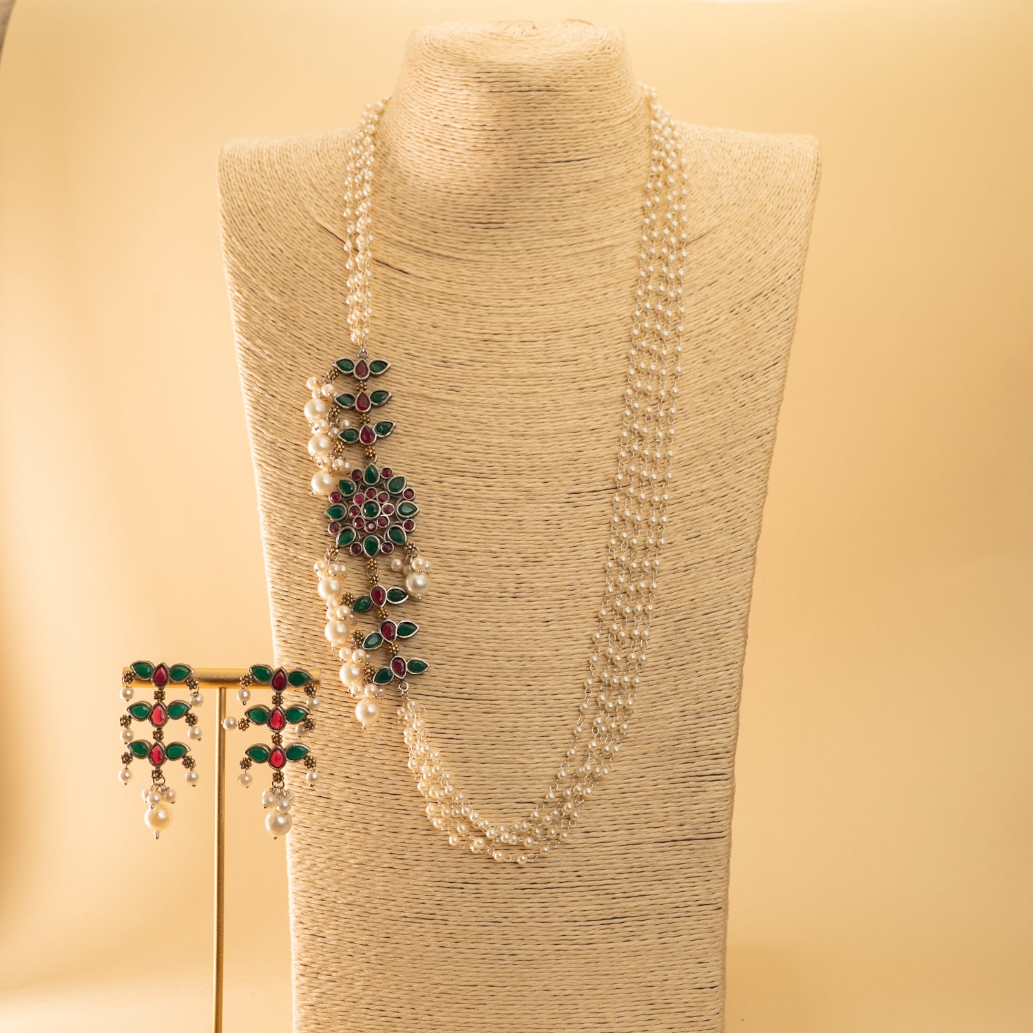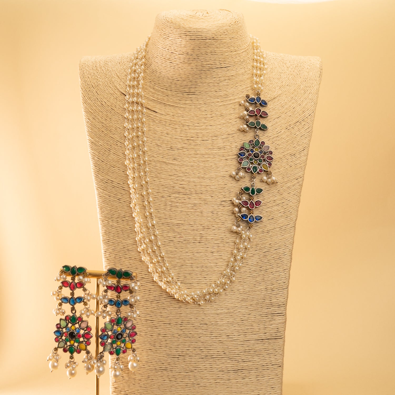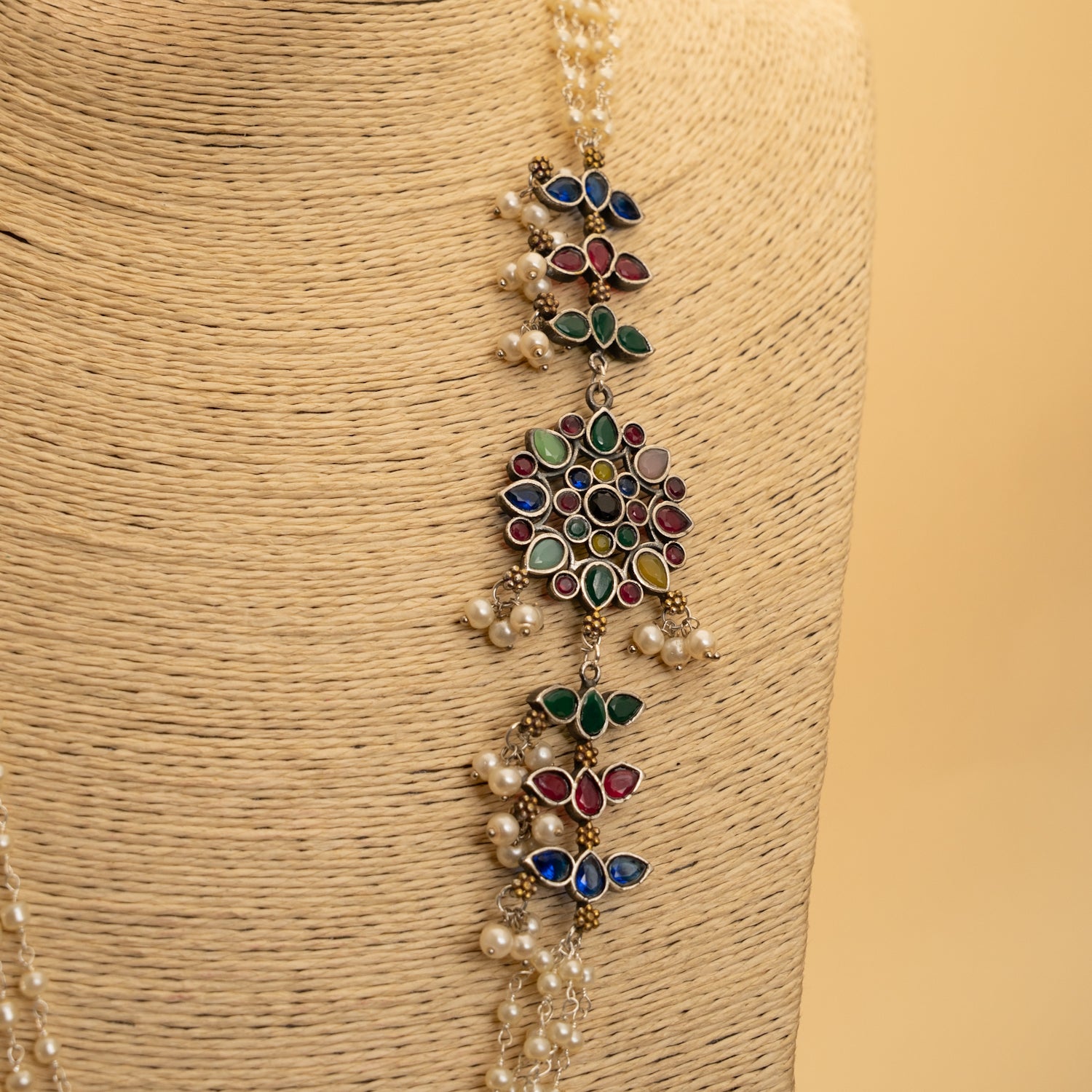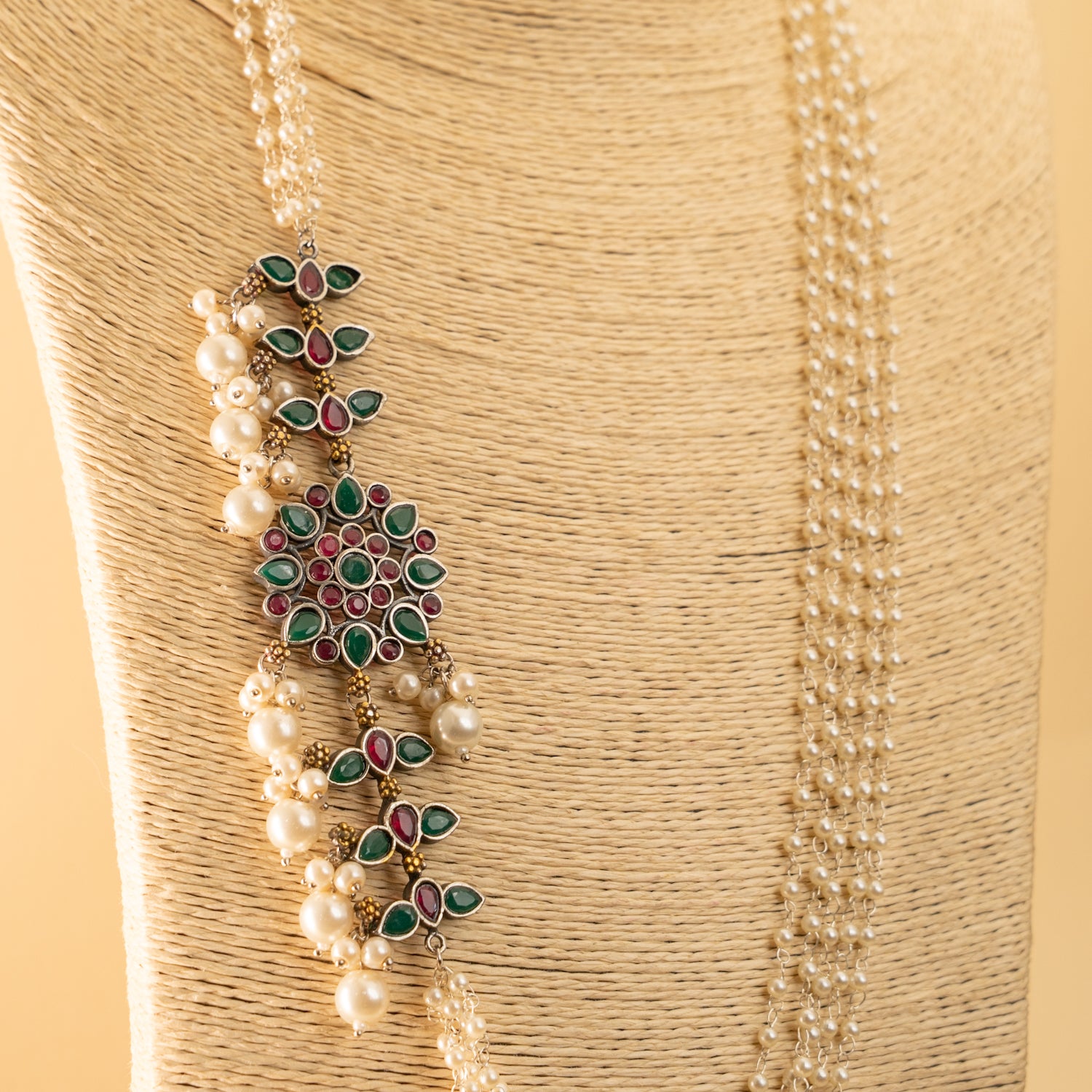 ZOYAHH PEARL LAYERED BIJOUX EXCLUSIVE HANDMADE SILVER LOOK ALIKE MALA/ NECKPIECE ML44