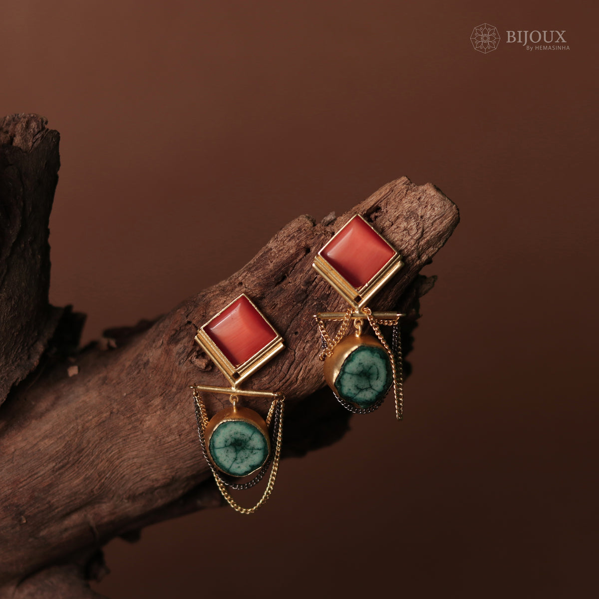 ELLE GOLD PREMIUM NATURAL STONE HANDMADE EARRING/STUD ER931