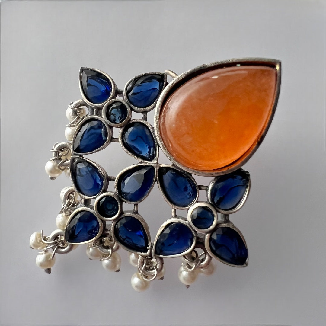 DIA RING MONALISA & DRUZY TREASURE HANDMADE AND HAMD HAMMERED EARRINGS ER77