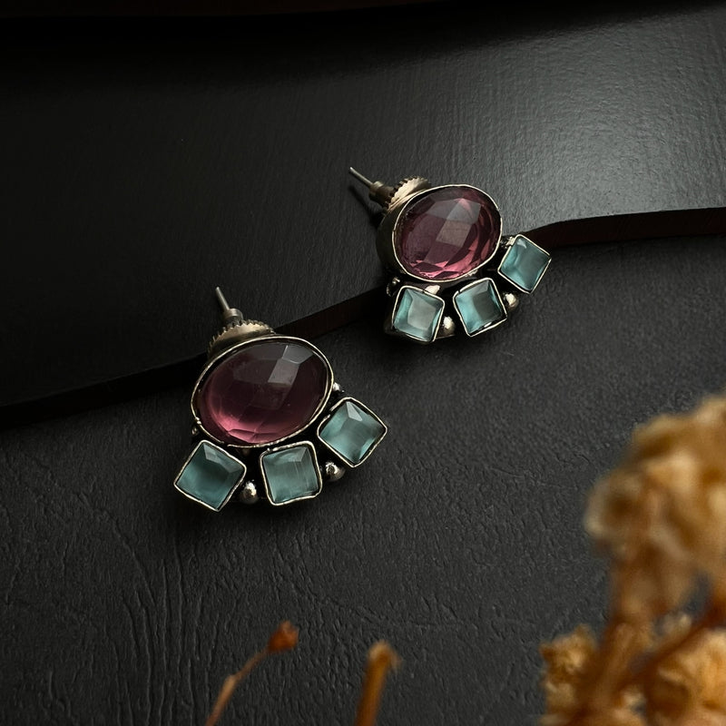 MARA FAUX SILVER HANDMADE BRASS RAW AND RUSTIC MONALISA STUDS/EARRINGS ER432