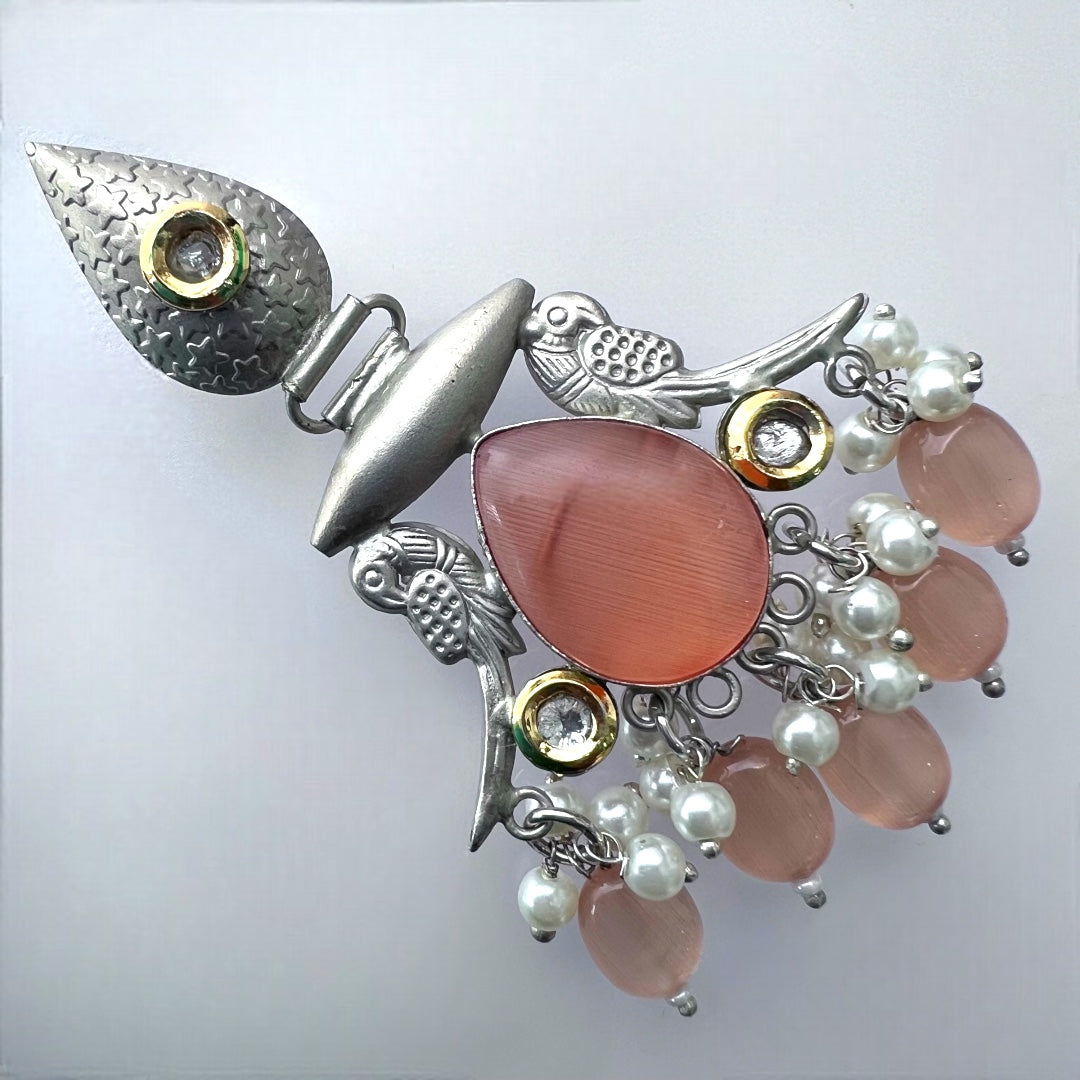 AURELIA FAUX SILVER ANTIQUE SEMI HANDMADE MONALISA STONE EARRINGS/JHUMKAS ER774