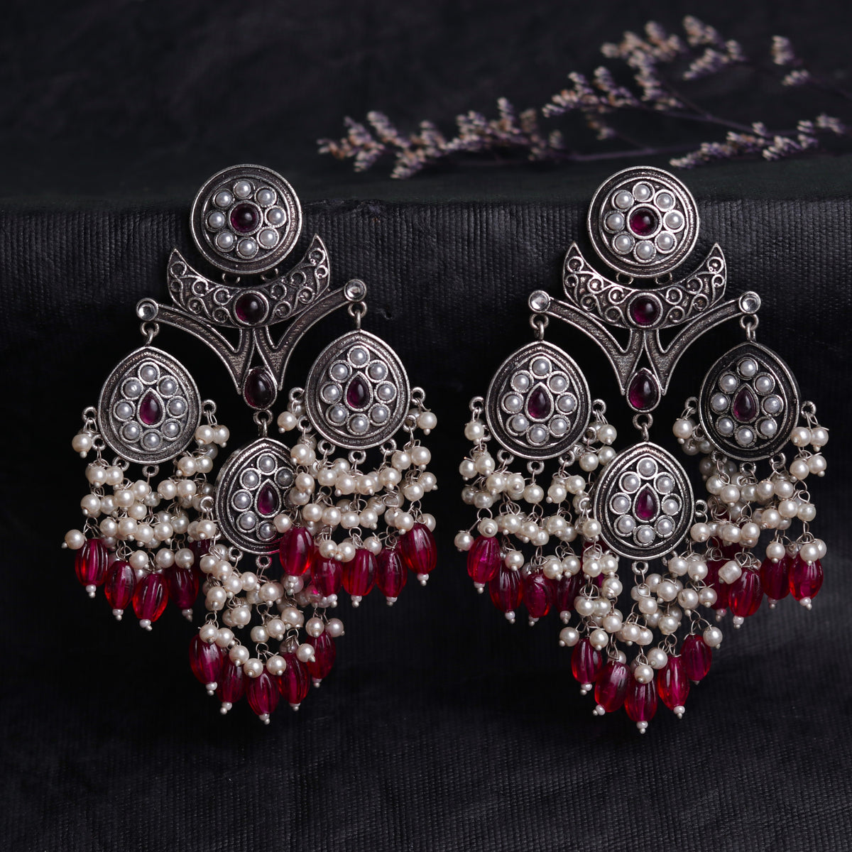 ARABELLA SEMIHANDMADE JUMBO OXIDIZED BEADED EARRING ER106