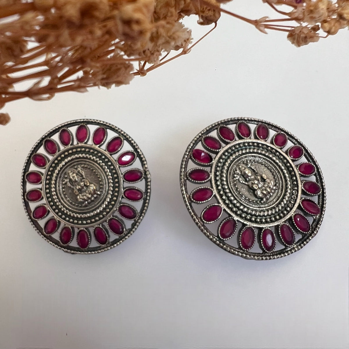 AELIN FAUX SILVER ANTIQUE SEMI HANDMADE EARRINGS/STUDS ER797