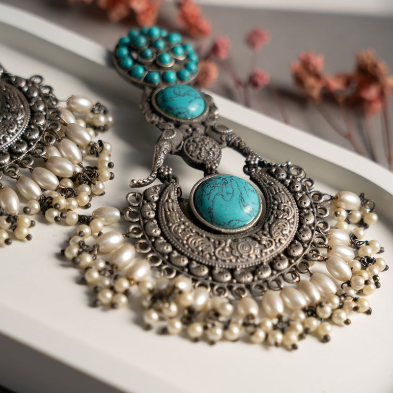 BAISAKHI FAUX SILVER ANTIQUE SEMI HANDMADE EARRINGS ER746
