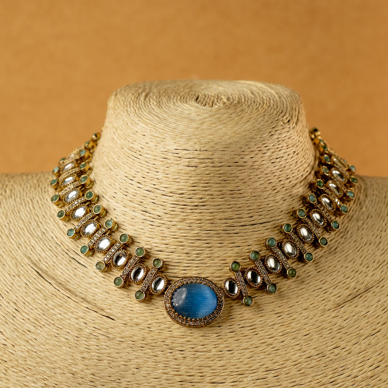 ZOE RAW AND RUSTIC ANTIQUE SEMI HANDMADE CHOKER WITH EARRINGS CH117