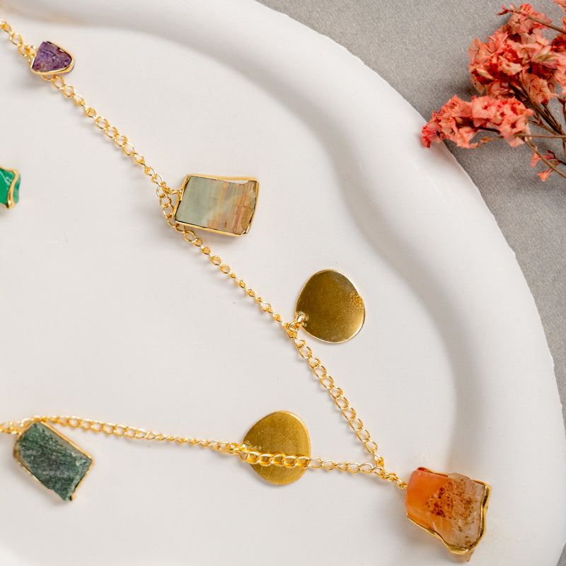 ZOHRA SEMI HANDMADE MONALISA STONE NECKPIECE/NECKLACE EARRINGS NL325
