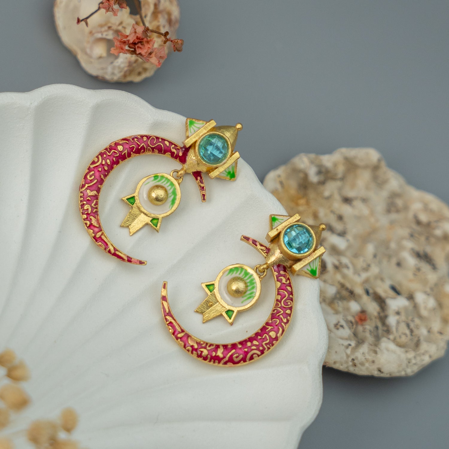 Note : The color and design in the reference image may be slightly different from the actual product. Since these earrings are handmade, the stems may be slightly bent, making each piece unique. Please read the care instructions before checkout.