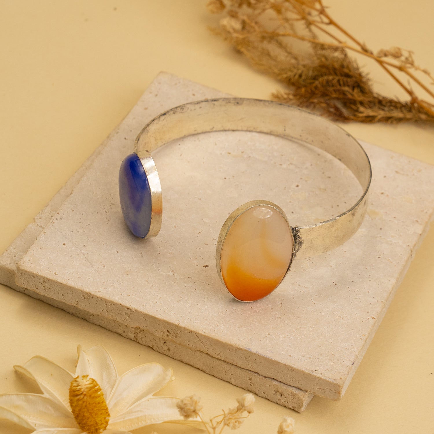 Discover the skill and meticulous care behind the creation of the RINIKA HAND HAMMERED AND HANDMADE SILVER TONED CLASSIC STONE BRACELETS BR90. These bracelets showcase genuine gemstones and demonstrate refined manufacturing craftsmanship, reflecting timeless elegance and impeccable quality.