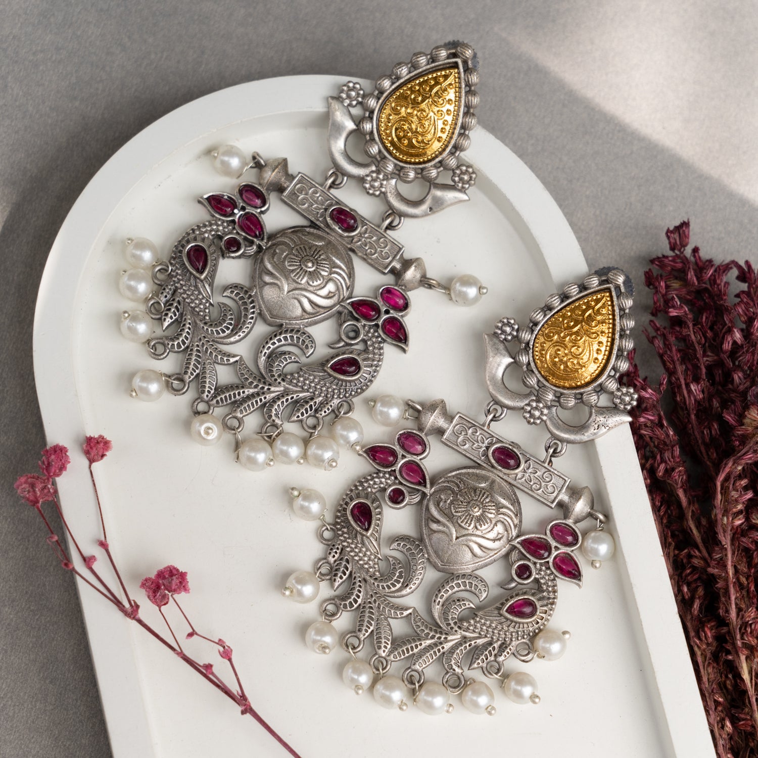 FAUX SILVER DUAL-TONE SEMI HANDMADE EARRINGS ER762