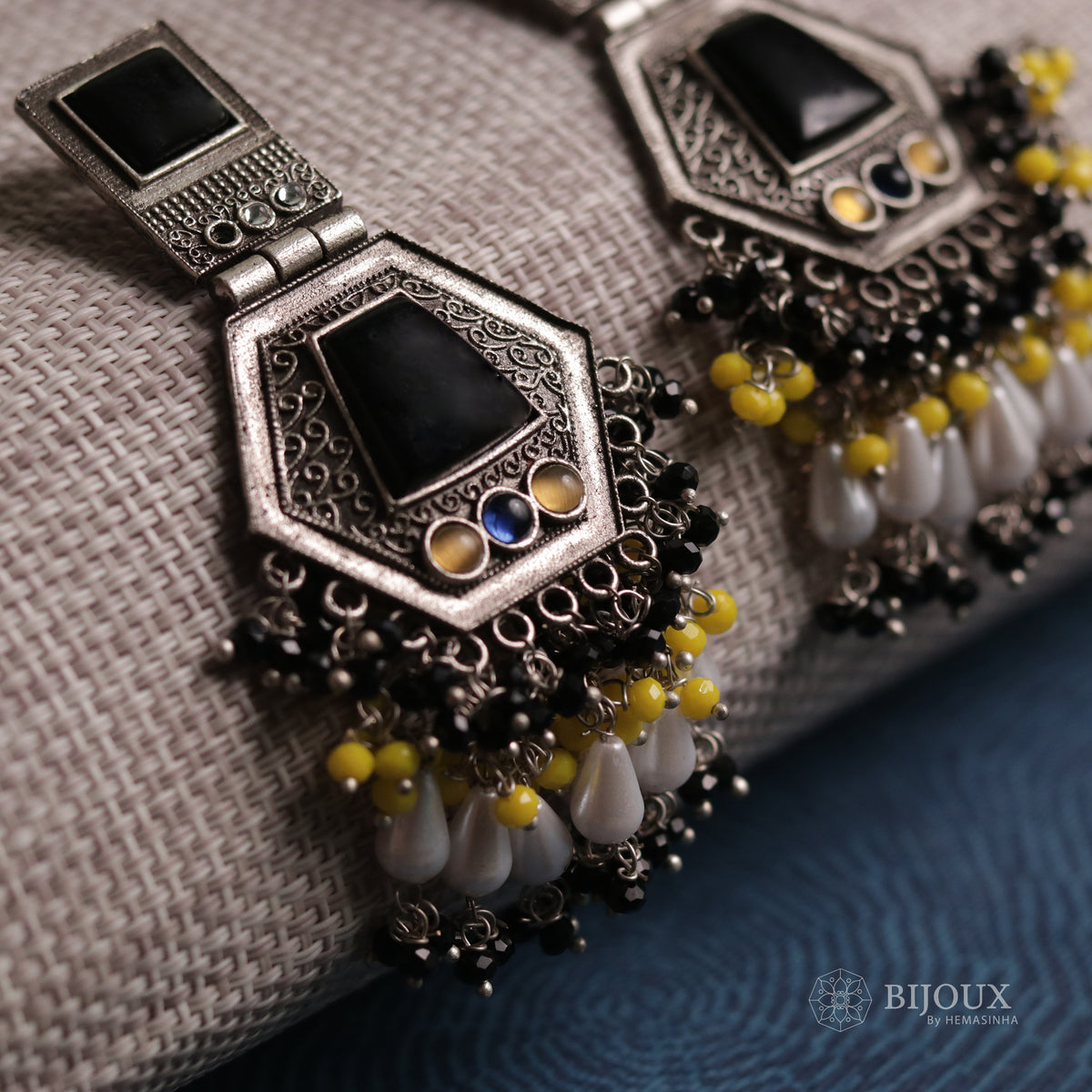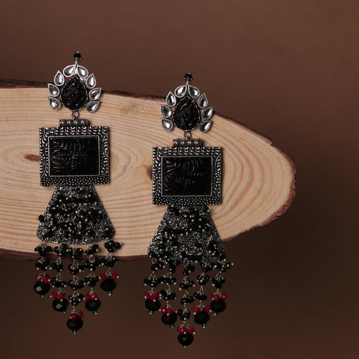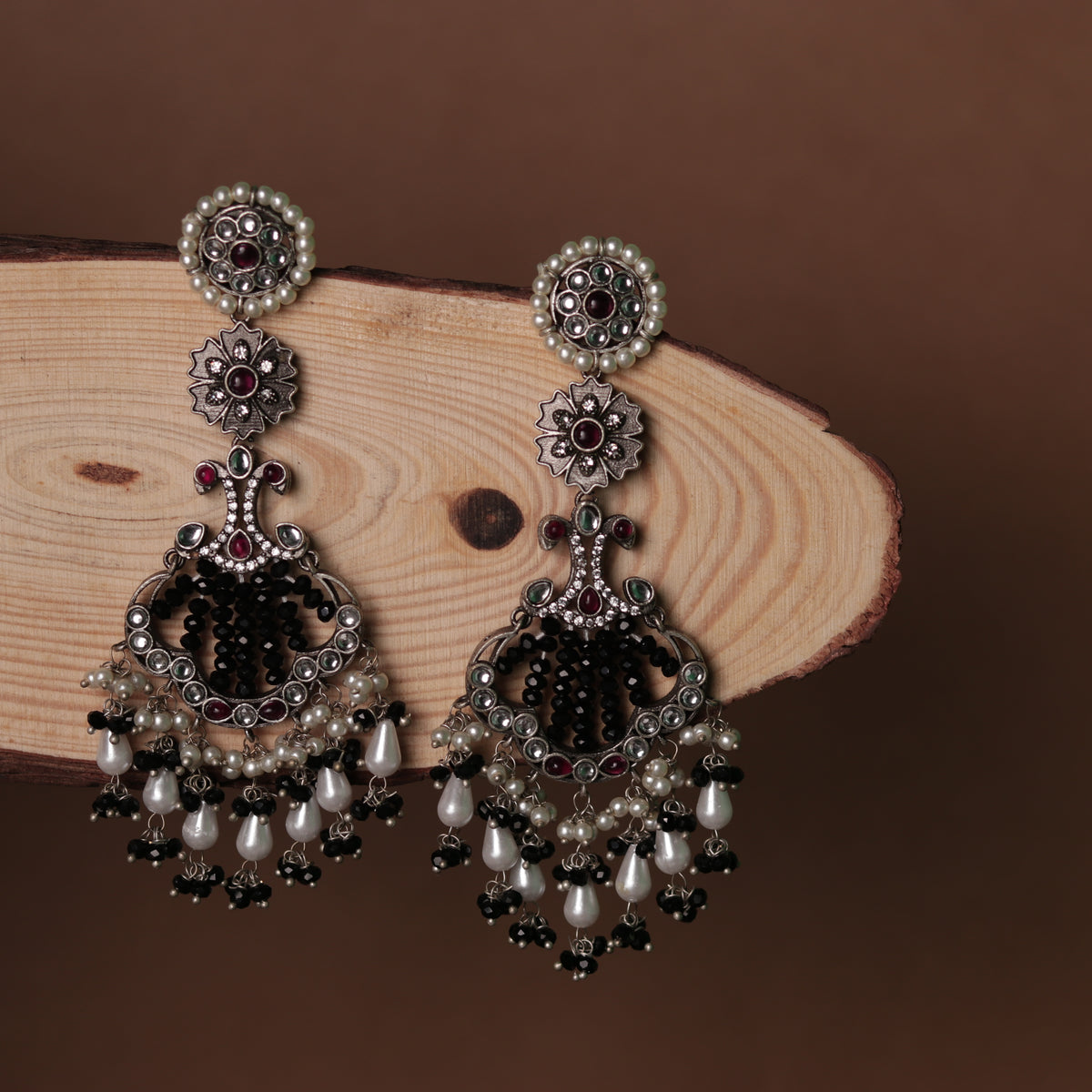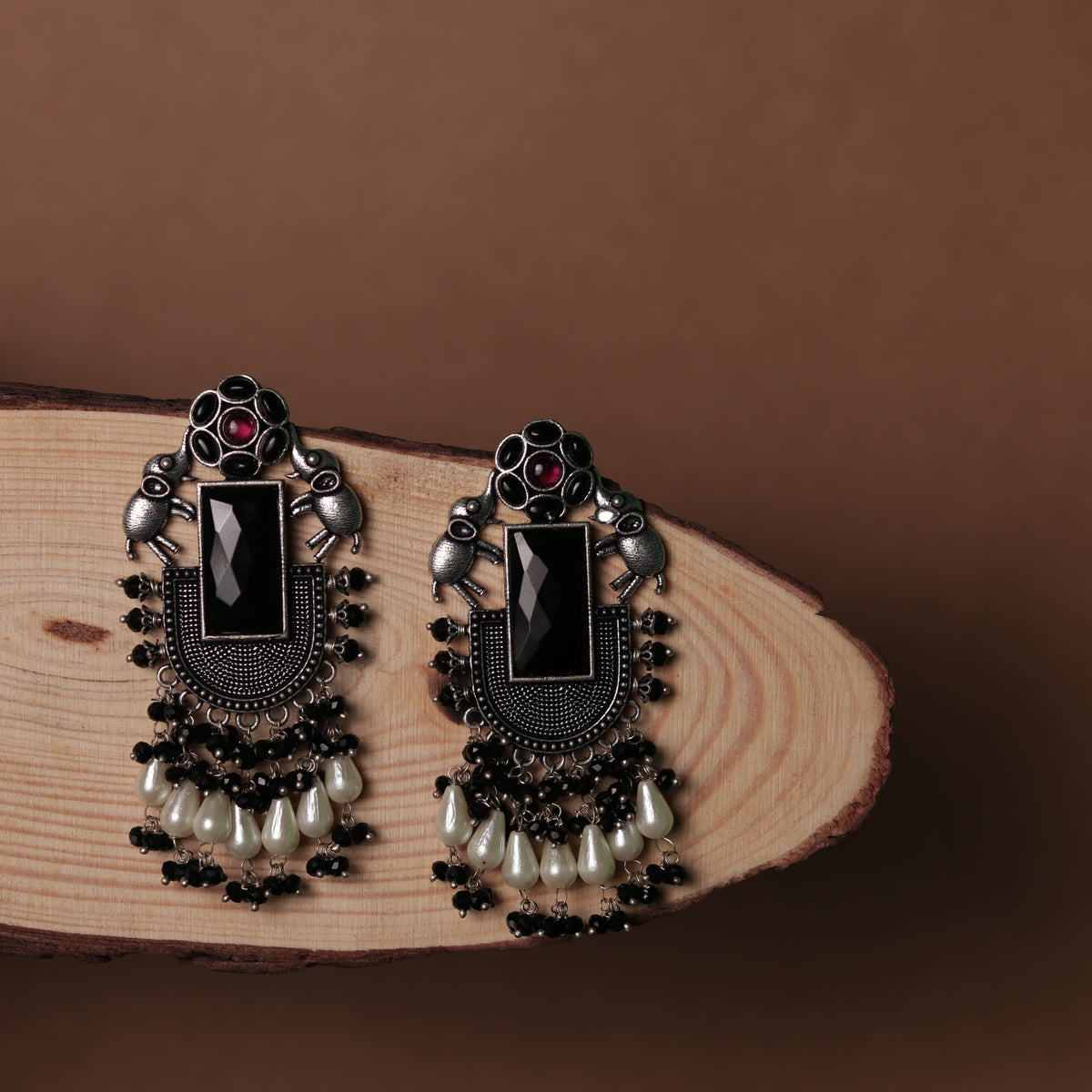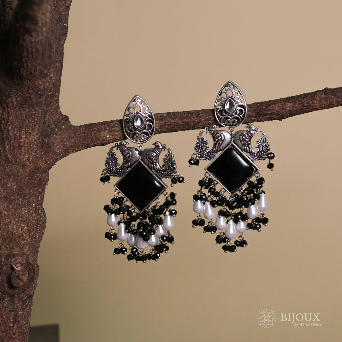 CELESTIA LONG CRYSTAL OXIDIZED PEACOCK SEMI HANDMADE EARRING ER116