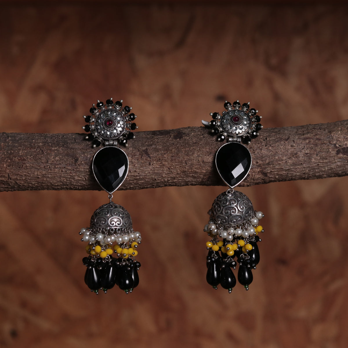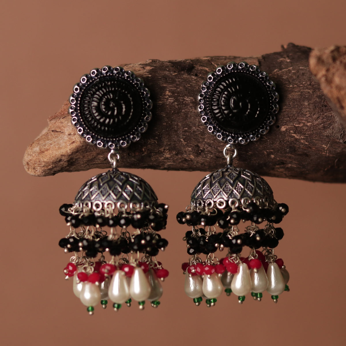 SPIRAL CARVING STONE SEMI HANDMADE BEADED JHUMKAS-ER113