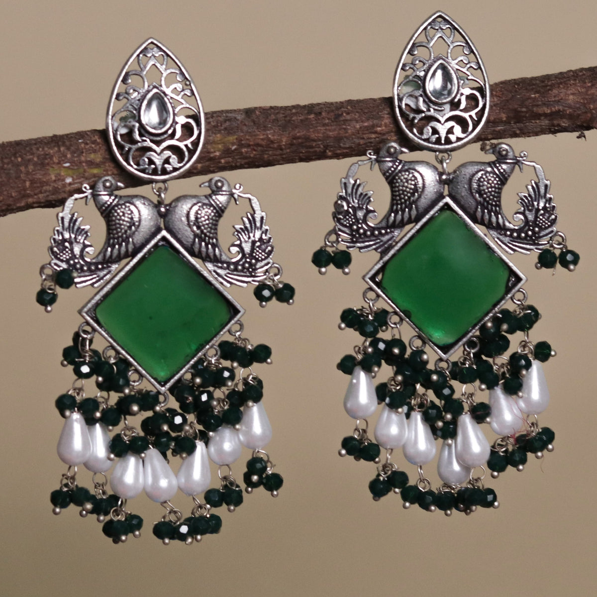 PEACOCK PERFECTIONS SEMI HANDMADE OXIDIZED EARRINGS ER169