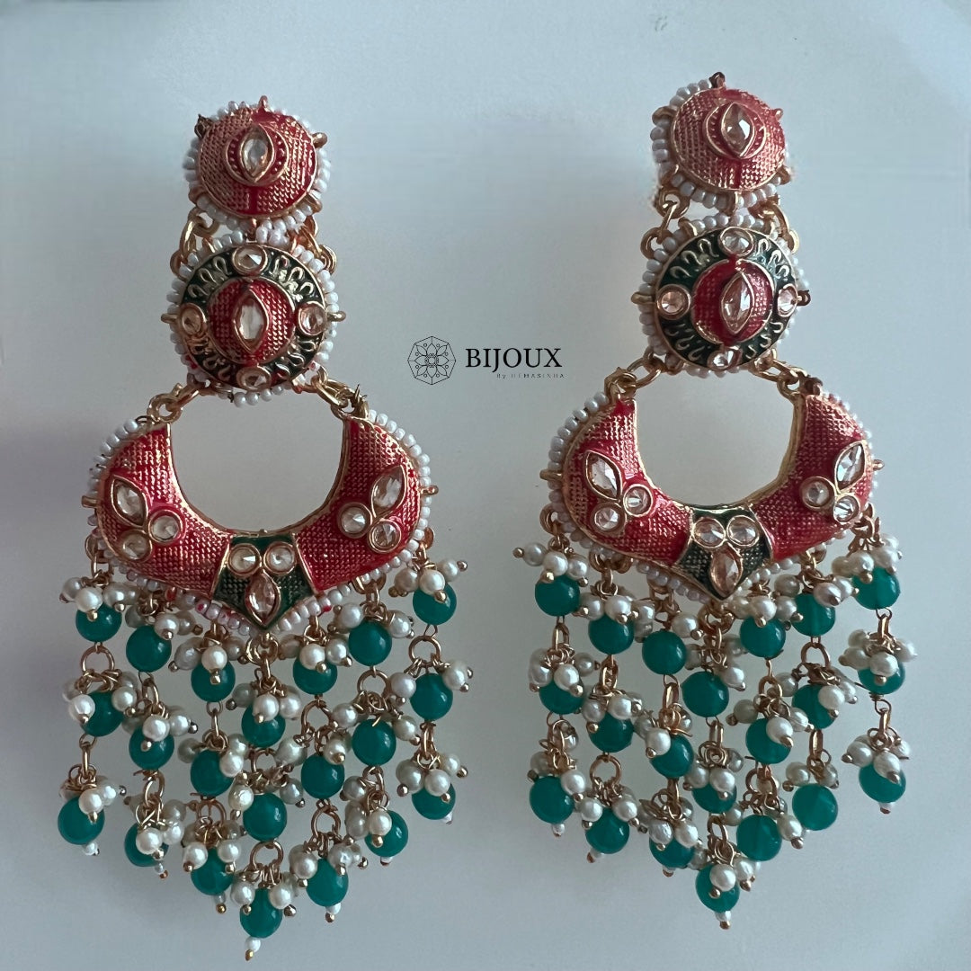 ROYAL ENCHANTMENT BEADED MEENAKARI GOLD-TONED EARRING -ER272