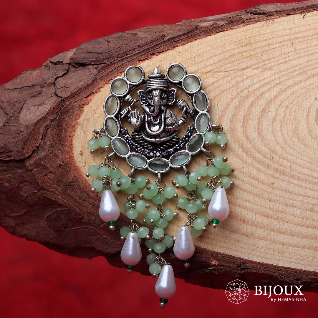 GANPATHI PAPPA OXIDIZED MONALISA STONE TEMPLE EARRING ER139