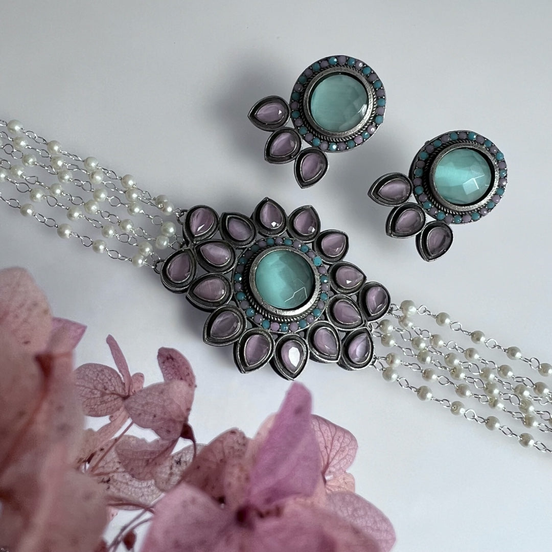 RIYAYA BIJOUX PREMIUM SEMI HANDMADE CHOKER WITH EARRINGS CH62