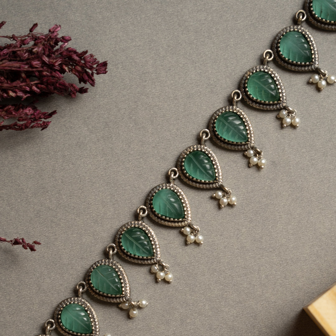 RELIKA FAUX SILVER BIJOUX PREMIUM AND EXCLUSIVE CARVING STONE SEMI HANDMADE CARVING NECKLACE WITH EARRINGS NL135