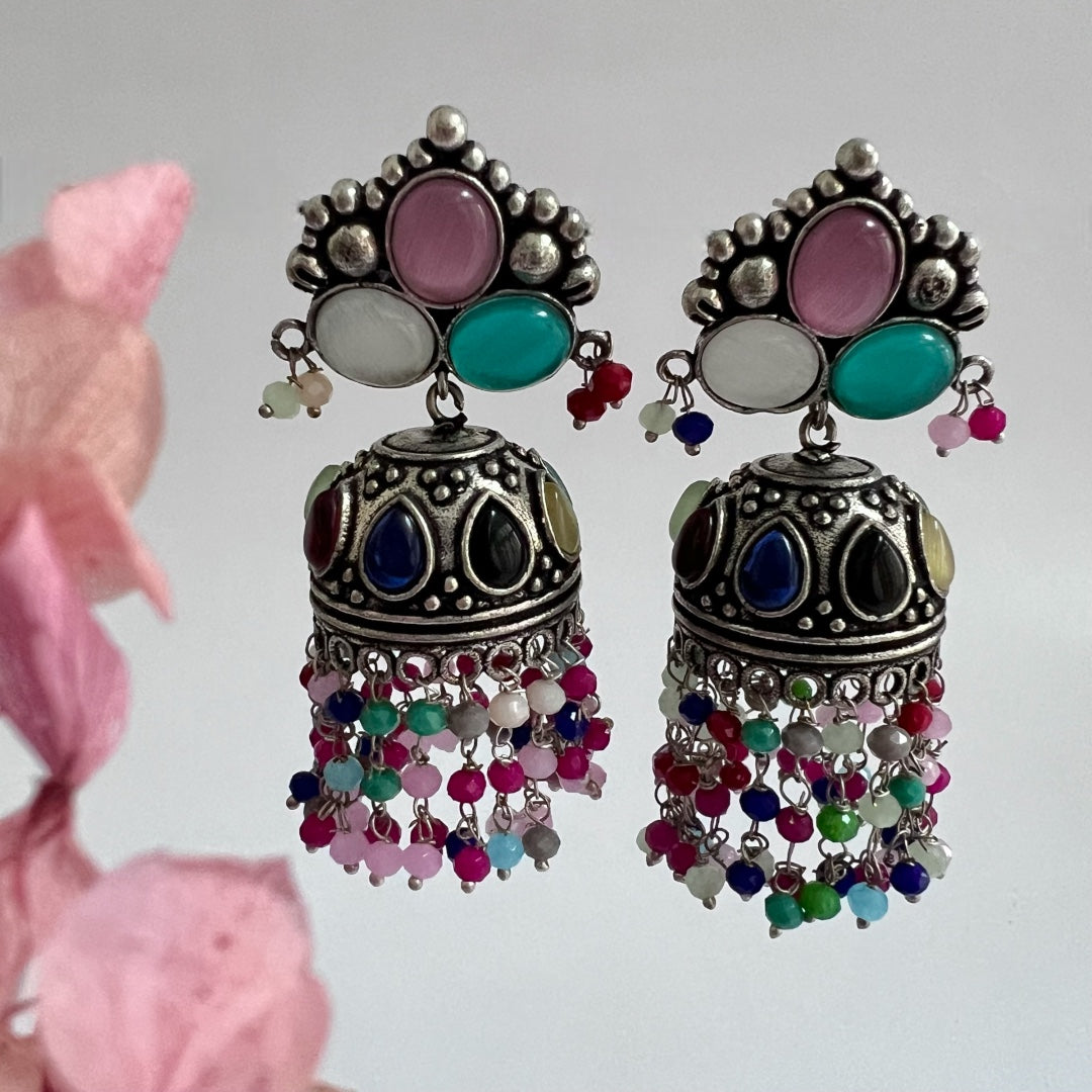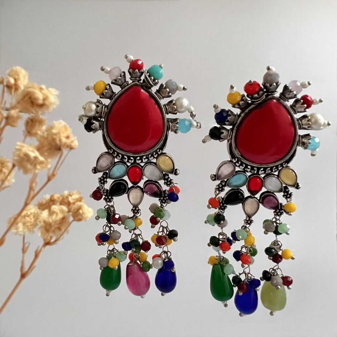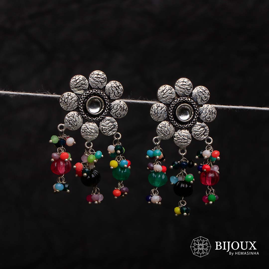 ELEANOR BEADED SEMI HANDMADE OXIDIZED EARRING ER134