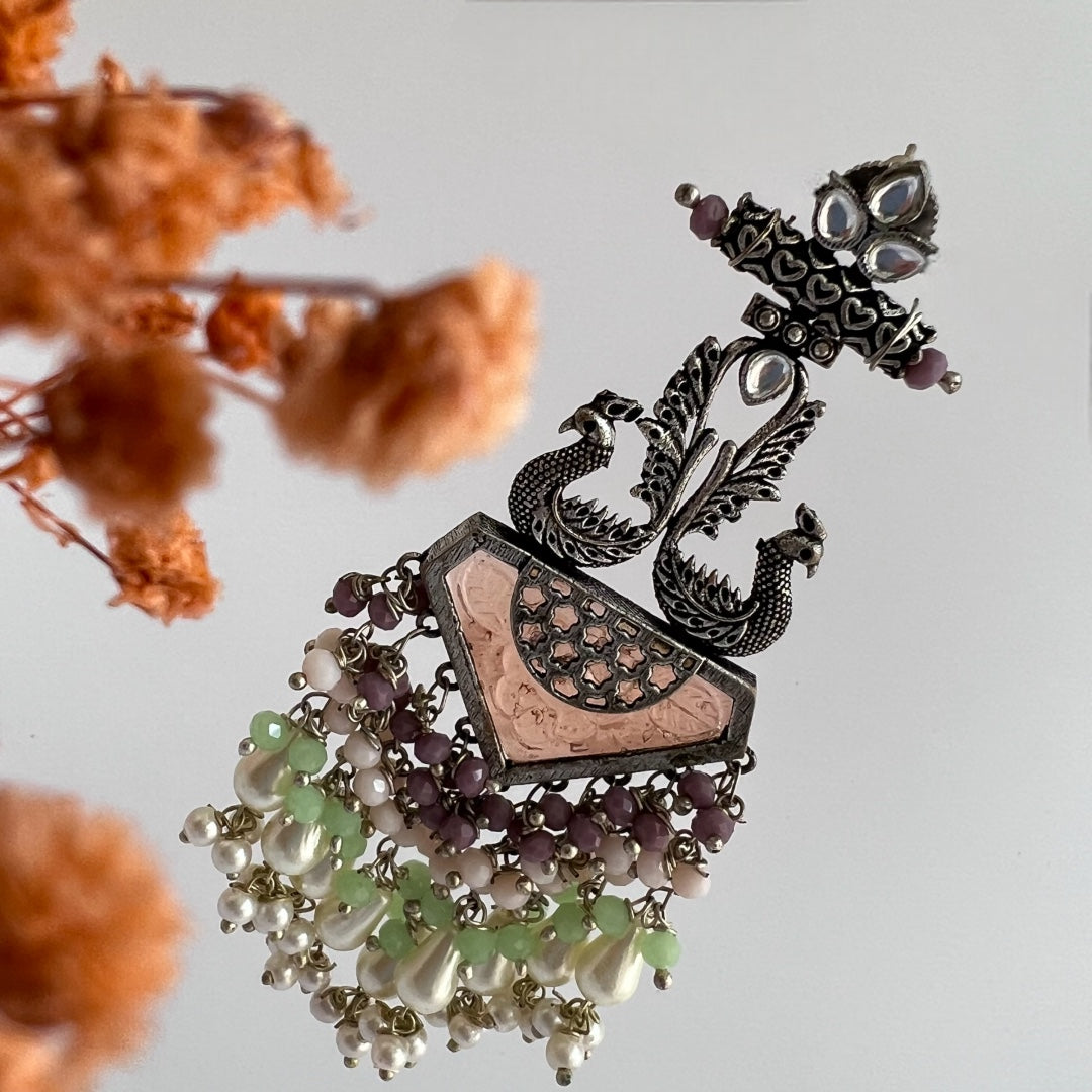 MIRAGE CARVING STONE PEACOCK SEMI HANDMADE BEADED EARRING ER118