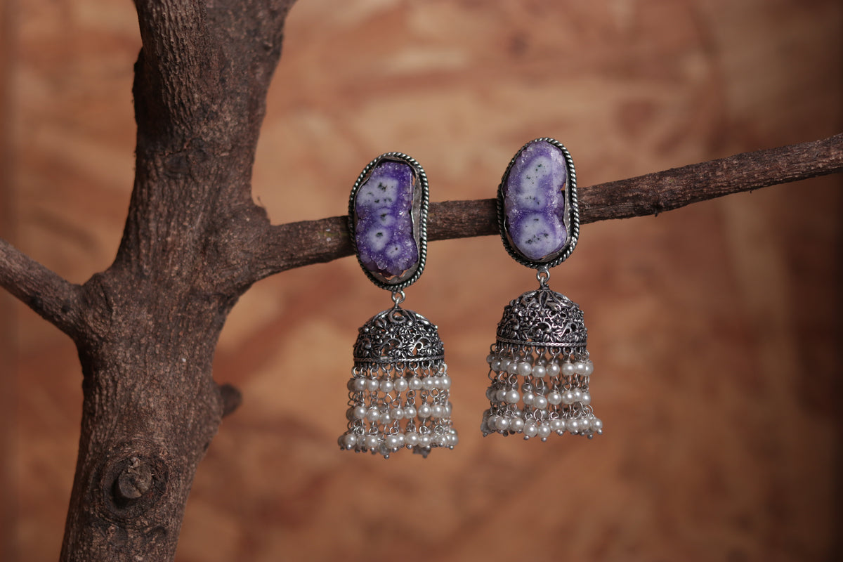 SPLENDOR DRUZY AND AGATE STONE SEMI-HANDMADE OXIDIZED JHUMKA ER54