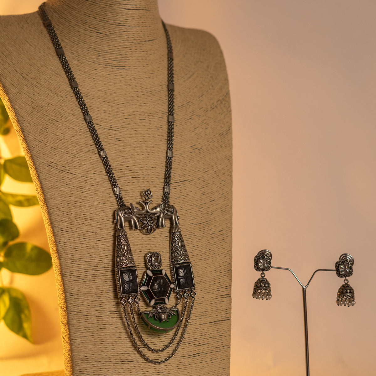 MOMO SILVER LOOK ALIKE ANTIQUE SEMI-HANDMADE MALA WITH EARRINGS ML176