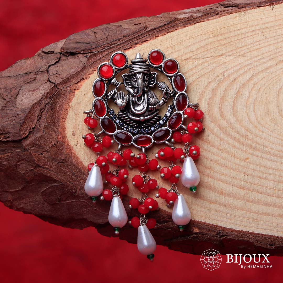 GANPATHI PAPPA OXIDIZED MONALISA STONE TEMPLE EARRING ER139
