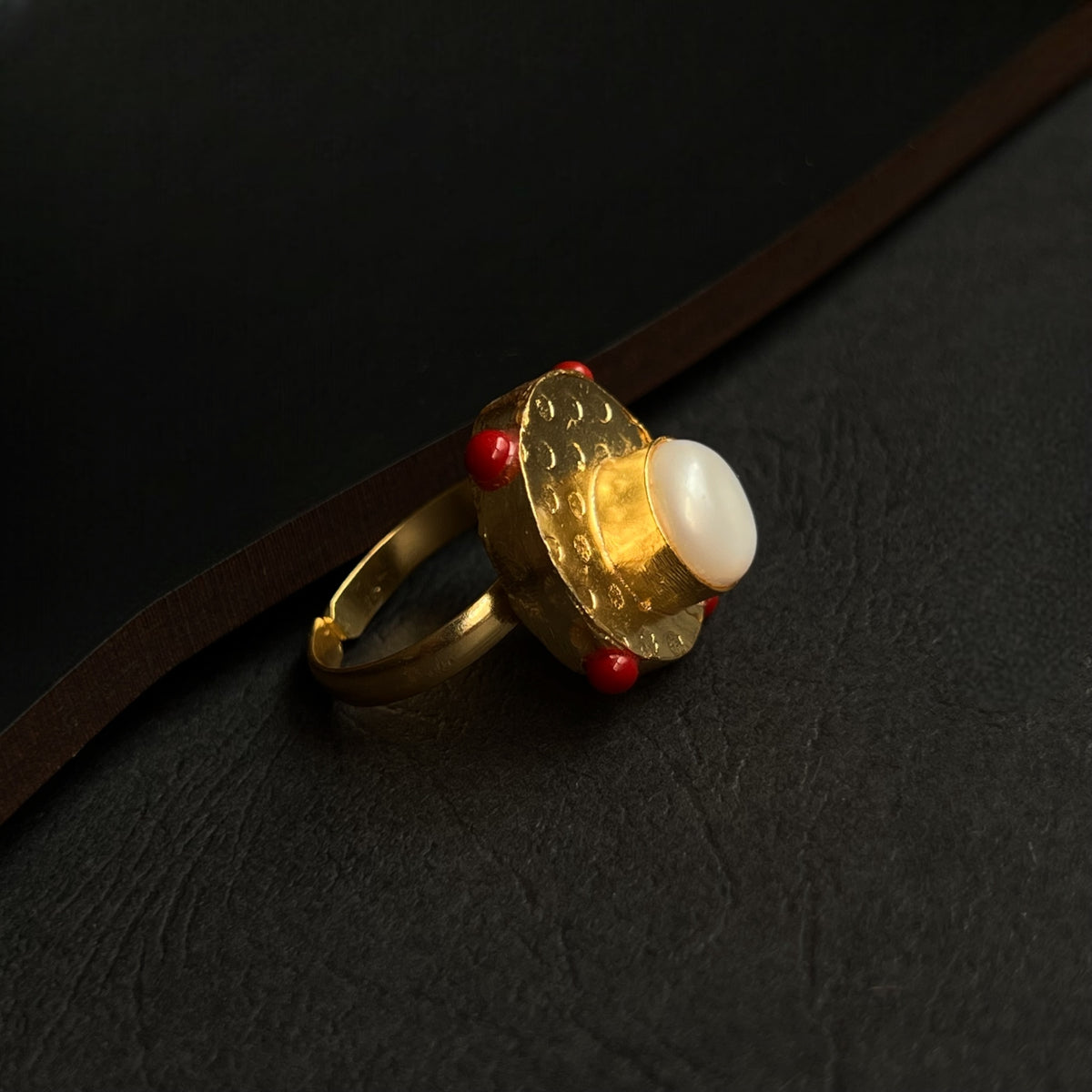 LOVE CIRCLE GOLD TONED PREMIUM HANDMADE PERAL RING R12