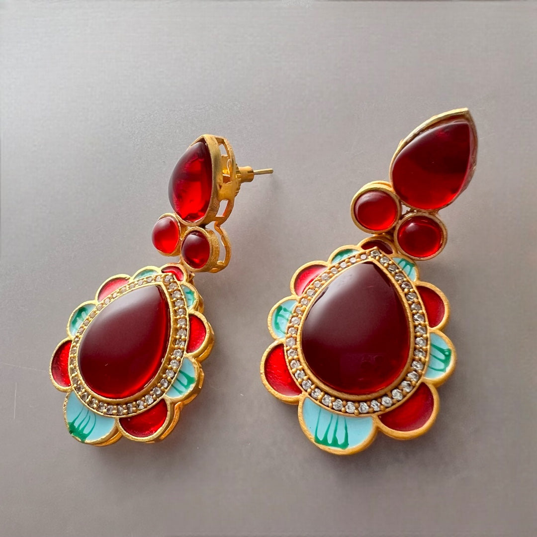 ROYAL ENCHANTMENT BEADED MEENAKARI GOLD-TONED EARRING -ER272