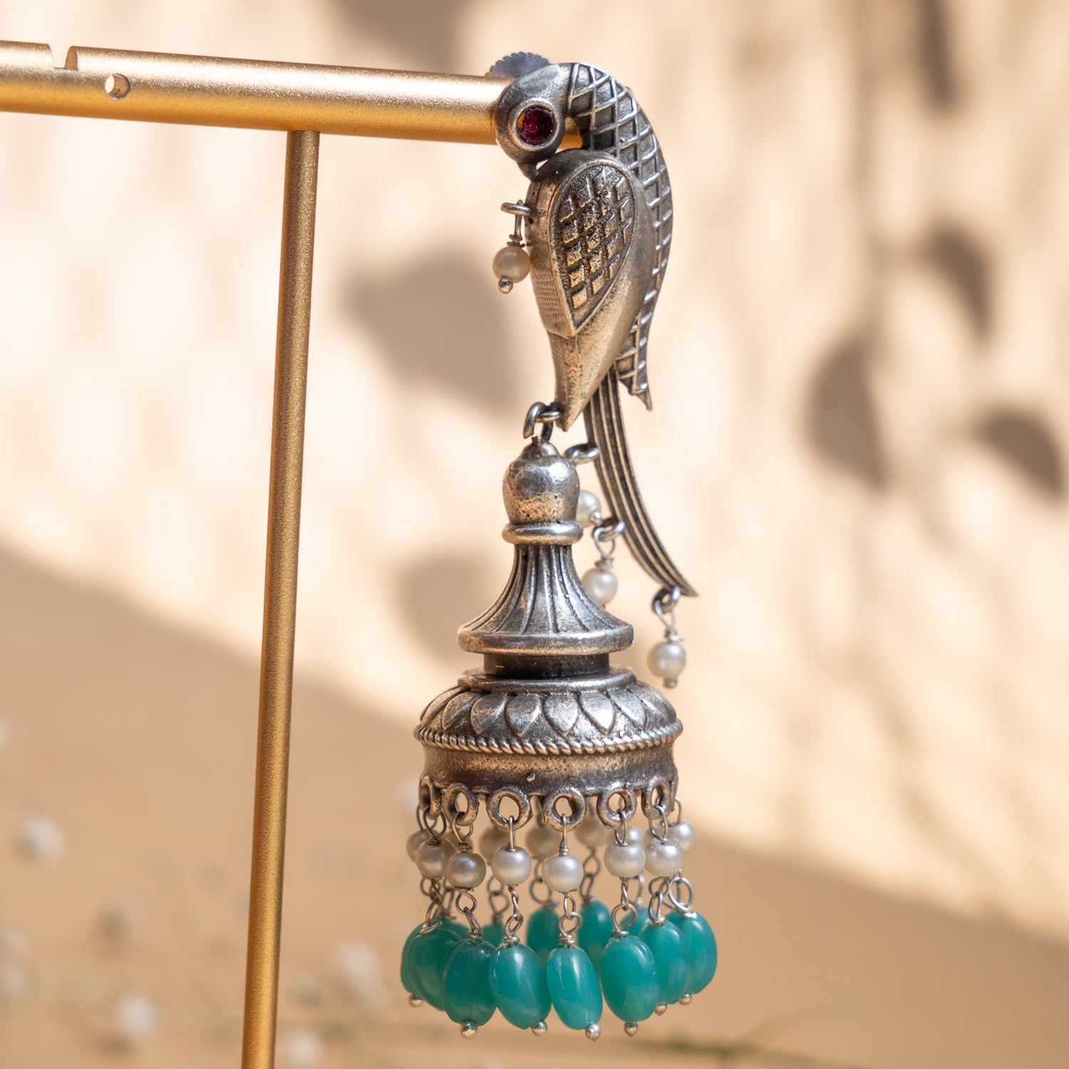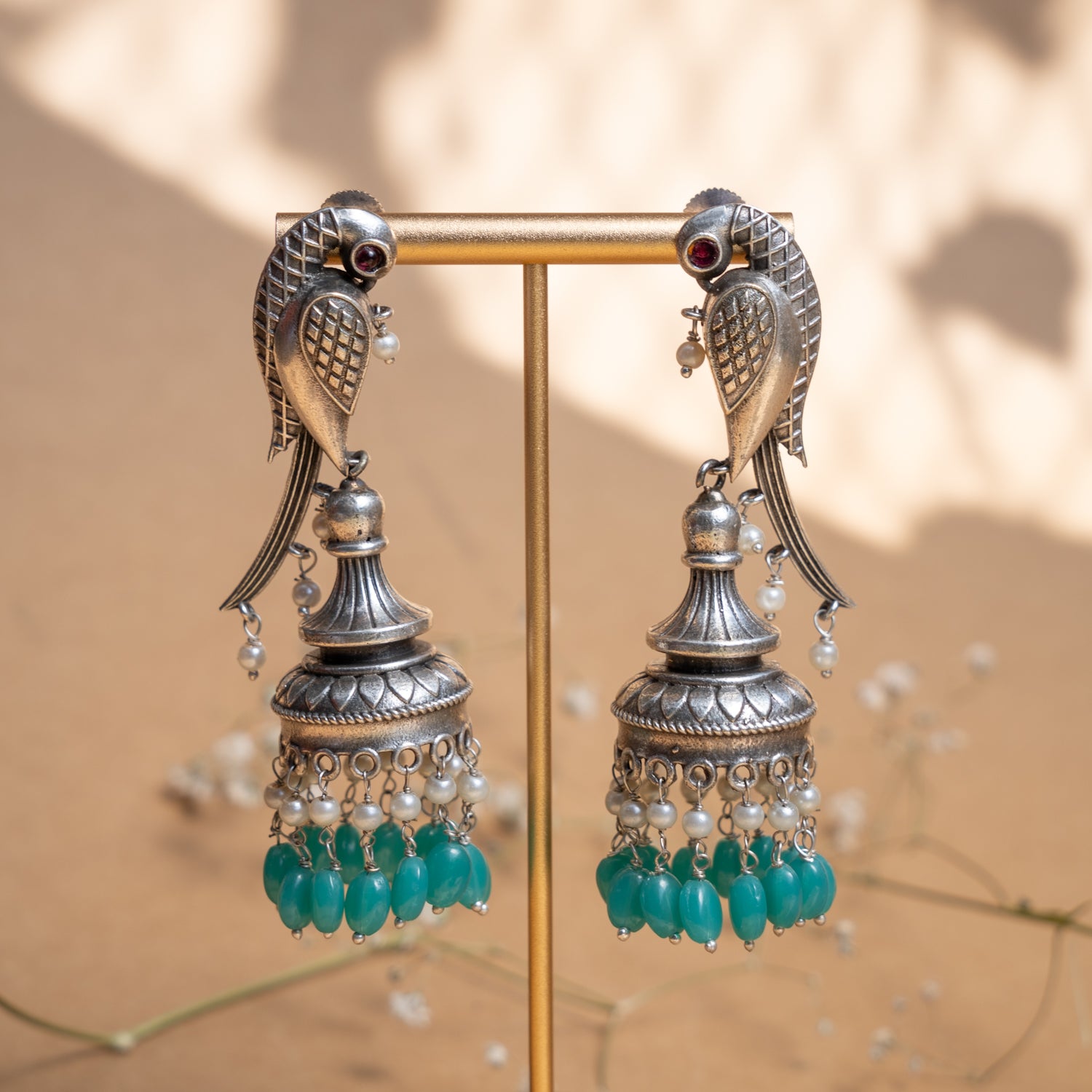 MILA FAUX SILVER SEMI HANDMADE ANTIQUE EARRINGS/JHUMKAS ER890