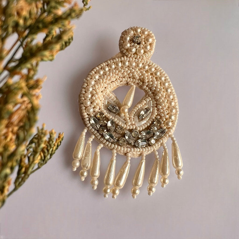 VIVORY FABRIC AND BEADS HANDMADE EARRING ER599