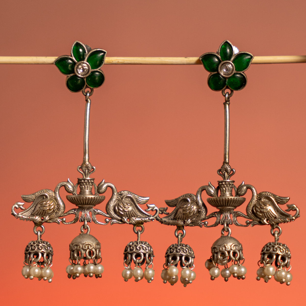 MEEASH FAUX SILVER ANTIQUE SEMI HANDMADE EARRINGS/JHUMKAS ER756