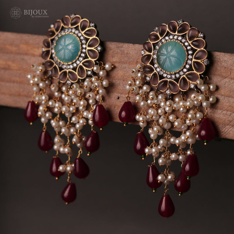 CORAL CARVINGS SEMI HANDMADE OXIDIZED EARRINGS ER168