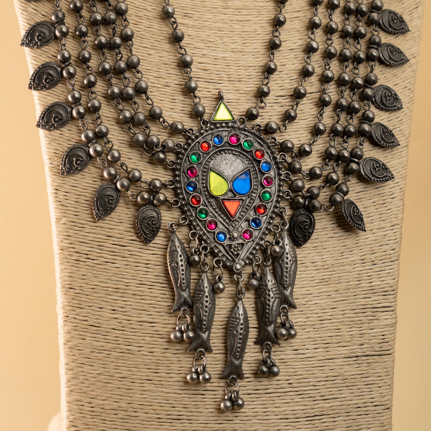 Experience the LUNA BLACK POLISH LAYERED MALA/NECKPIECE ML155, a perfect blend of classic charm and contemporary design. Meticulously assembled with premium beads, this necklace reflects superior craftsmanship. Handmade with precision, it merges age-old techniques and modern aesthetics to create a sophisticated and durable accessory.