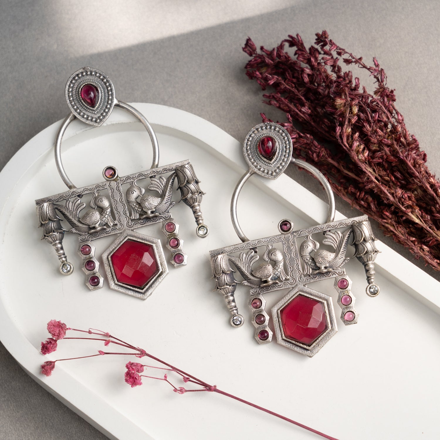 GAURI FAUX SILVER ANTIQUE SEMI HANDMADE EARRINGS ER771