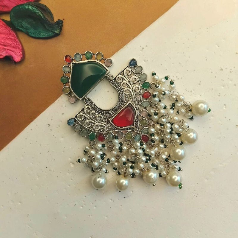 Introducing the RILEY SEMI HANDMADE OXIDIZED DANGLER EARRING ER374, meticulously crafted to blend modern design with classic skill. Featuring carefully oxidized metal and selected semi-precious stones, these earrings deliver lasting sophistication. Ideal for individuals appreciating a flawless balance between contemporary style and traditional craftsmanship.