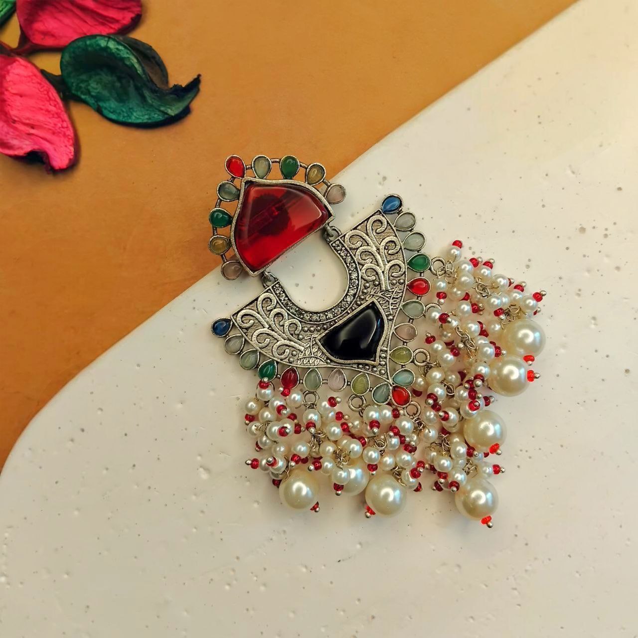 Presenting the TESSA SEMI HANDMADE OXIDIZED DANGLER EARRING ER375, expertly designed to merge contemporary aesthetics with time-honored craftsmanship. These earrings showcase finely oxidized metal complemented by handpicked semi-precious stones, offering enduring elegance. Perfect for those who value a seamless fusion of modern refinement and traditional artistry.