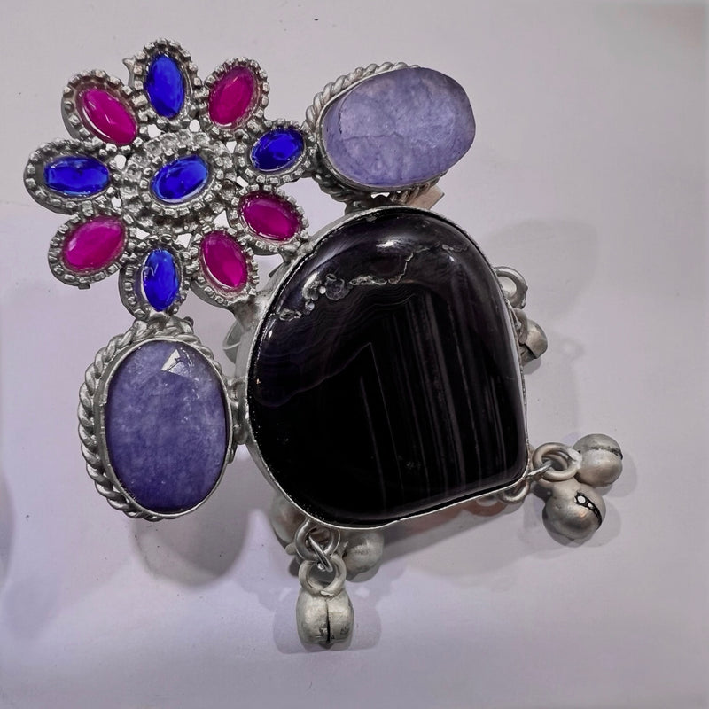 NIRAA PREMIUM HANDMADE NATURAL STONES SILVER POLISH RING R58