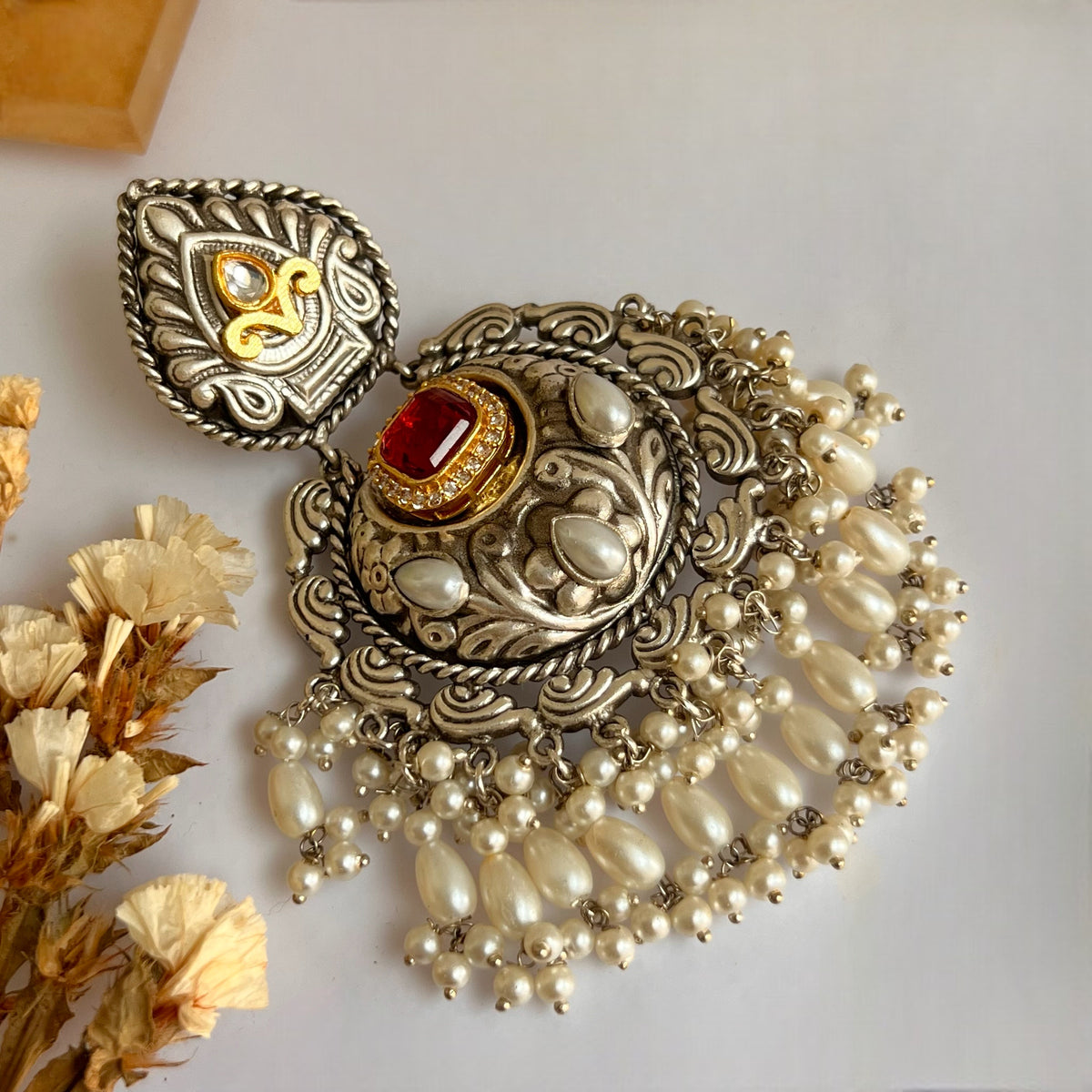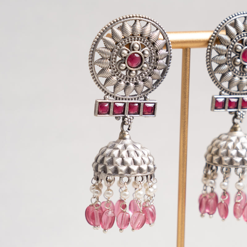 AAROHI FAUX SILVER SEMI HANDMADE RAW AND RUSTIC EARRINGS/JHUMKAS ER731