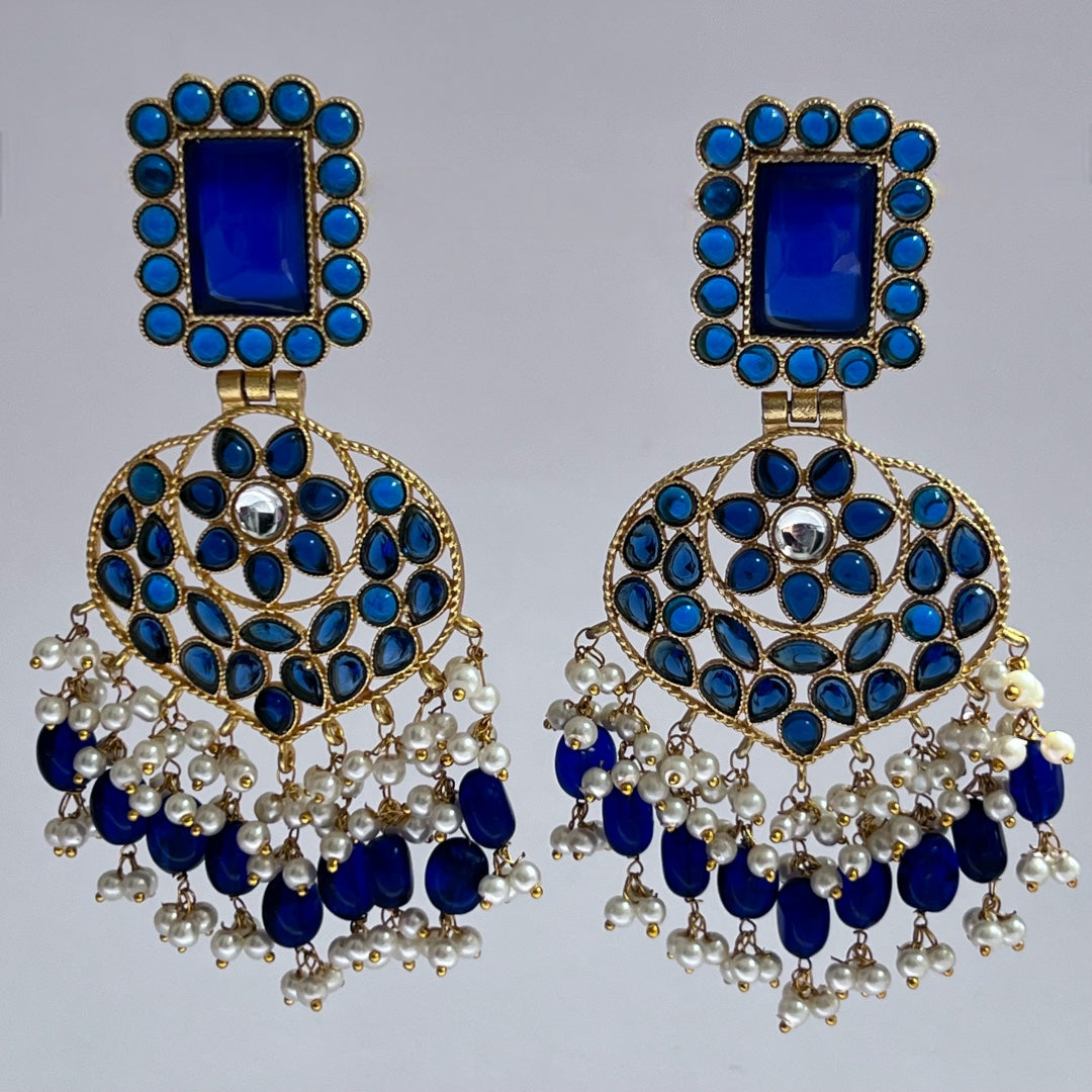 SERAPHINA FLARED BEADED BLUE STONE DANGLERS -SEMI HANDMADE-ER100