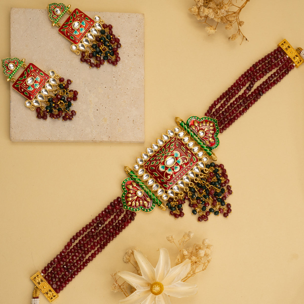NATALIA BIJOUX PREMIUM AND EXCLUSIVE ONEX BEADS MEENAKARI HANDMADE CHOKER WITH EARRINGS CH213
