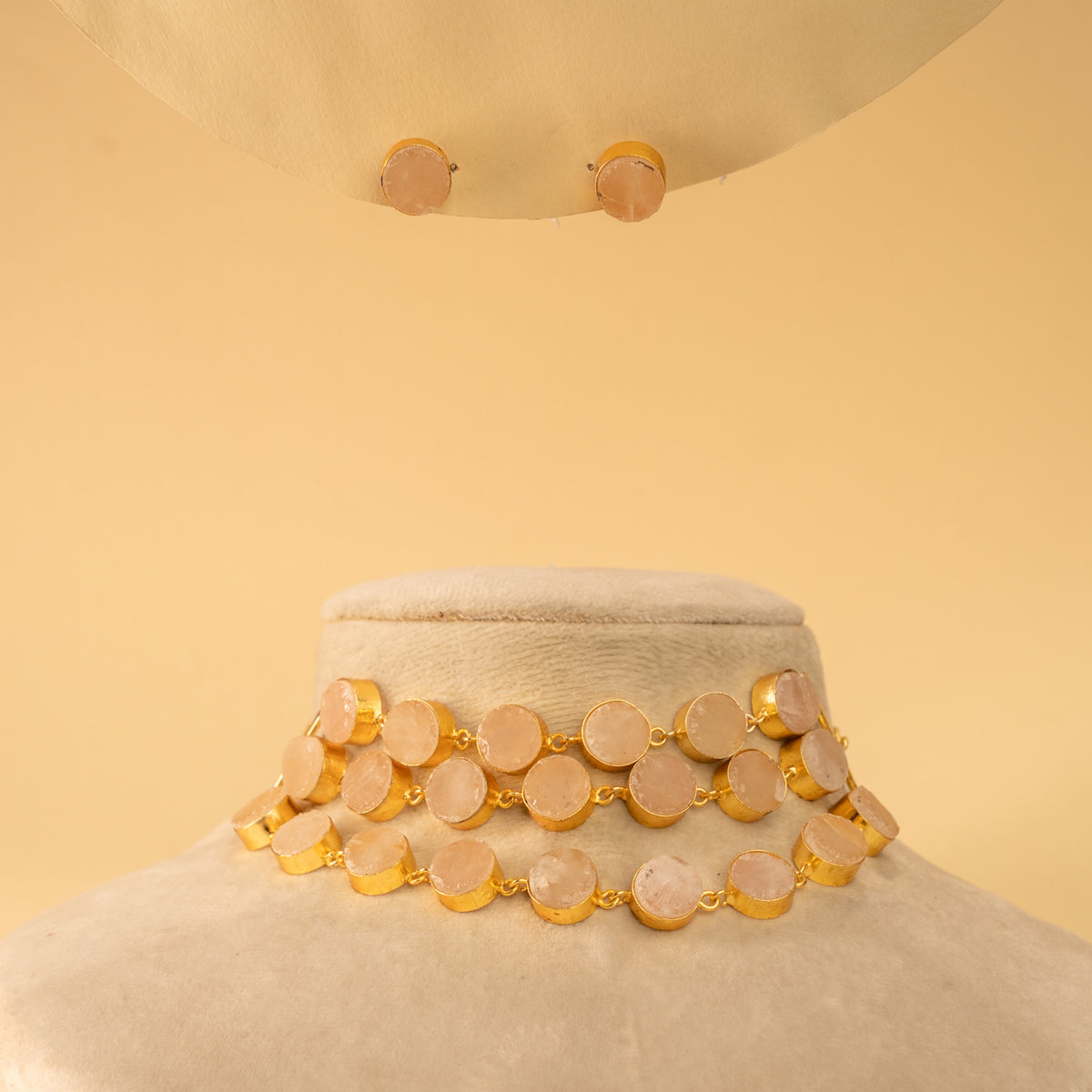 AILANY BIJOUX RAW STONE GOLD TONED 3 LAYERED HANDMADE CHOKER WITH EARRINGS CH428
