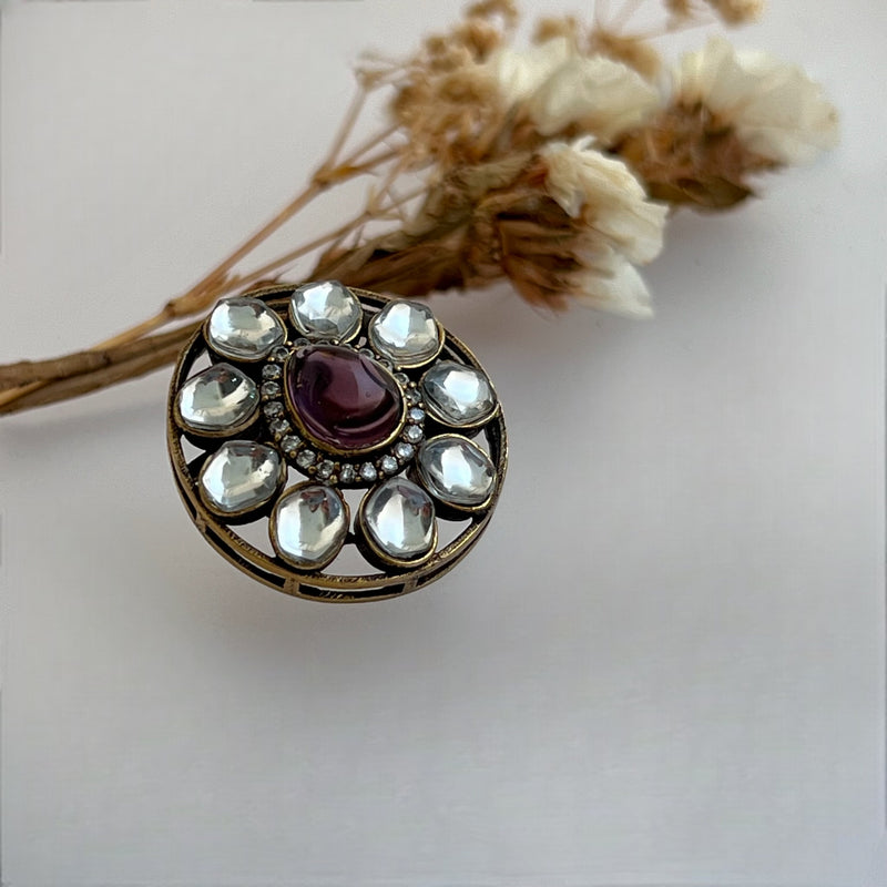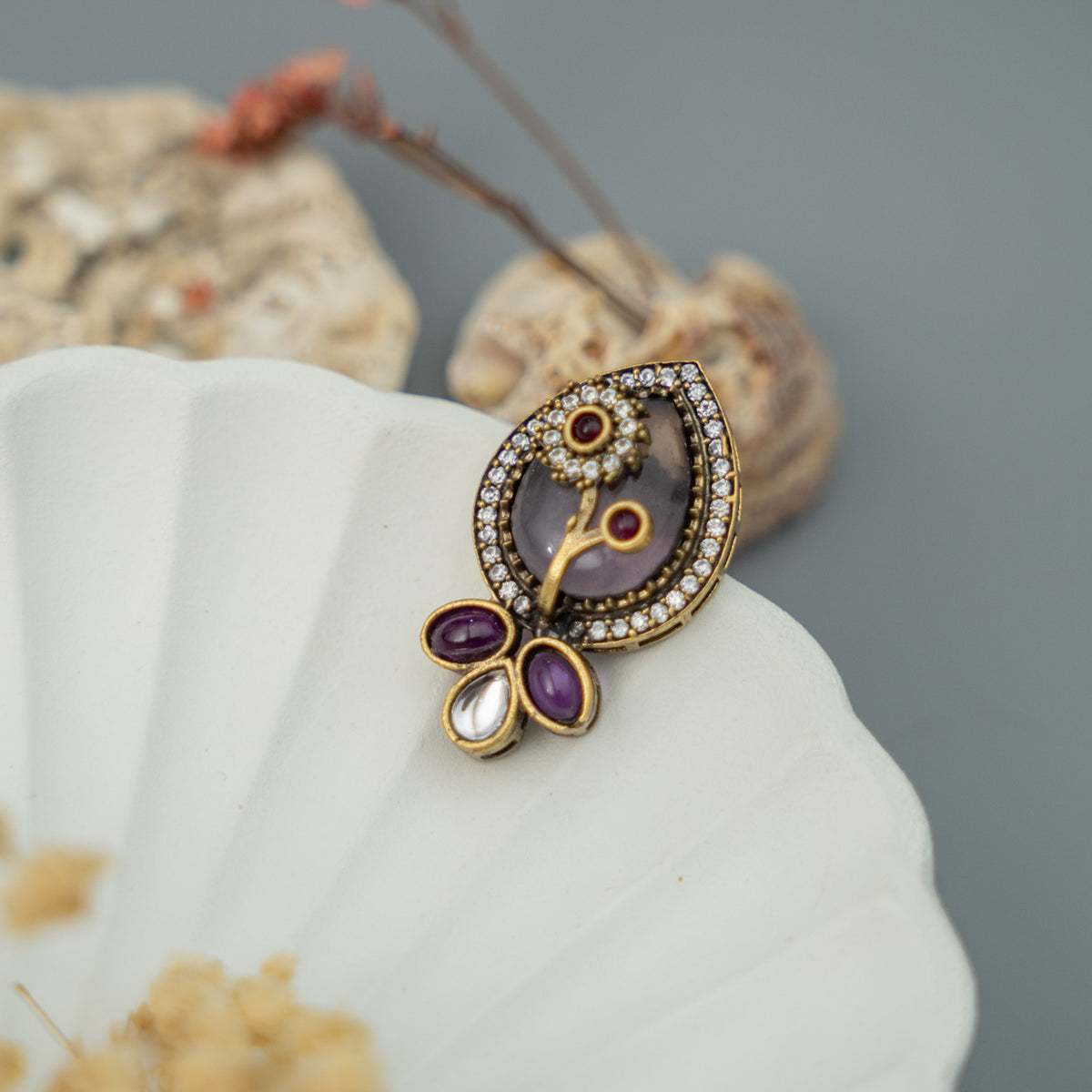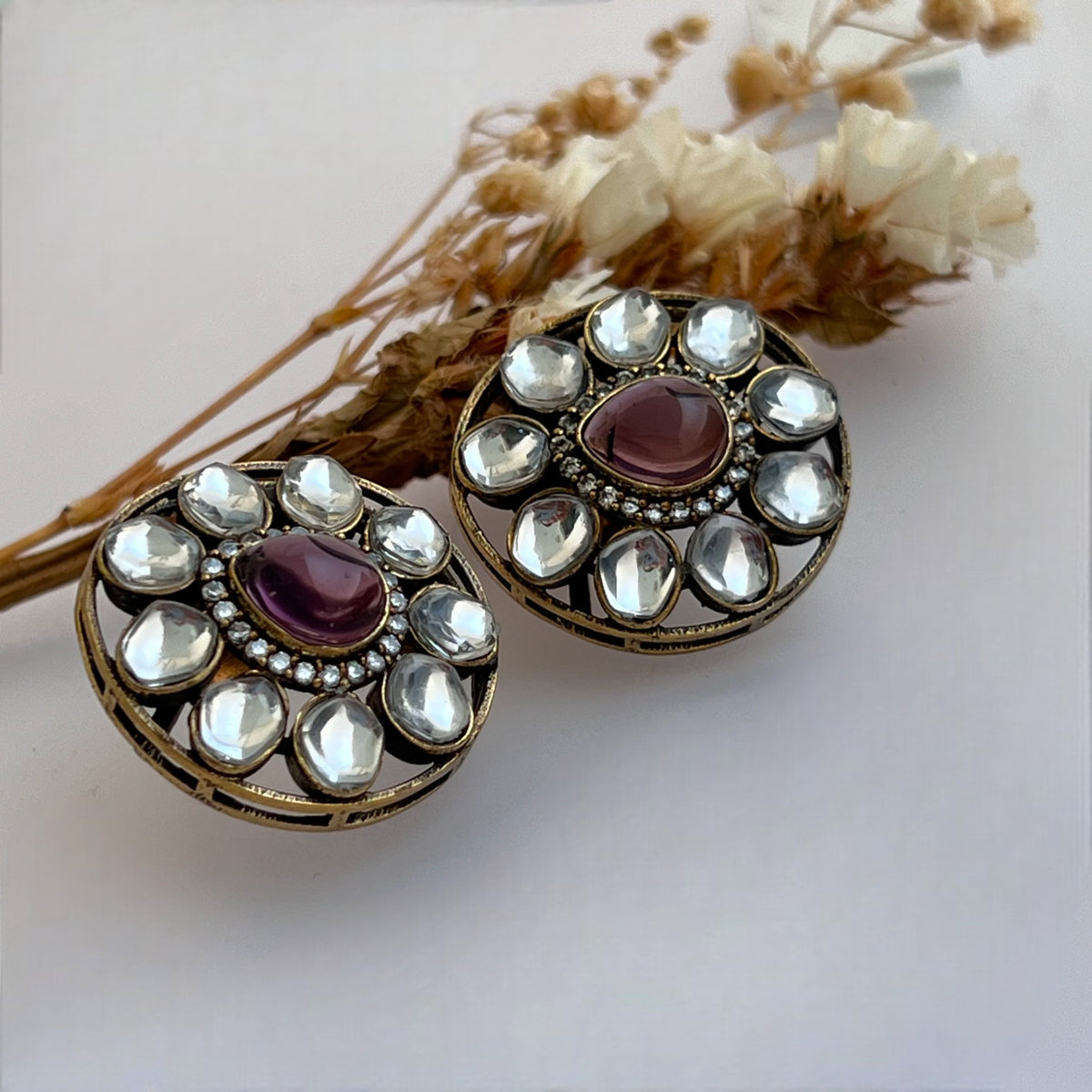YASODHA GOLD-TONED KUNDAN MONALISA PREMIUM STUDS WITH AD STONES ER566