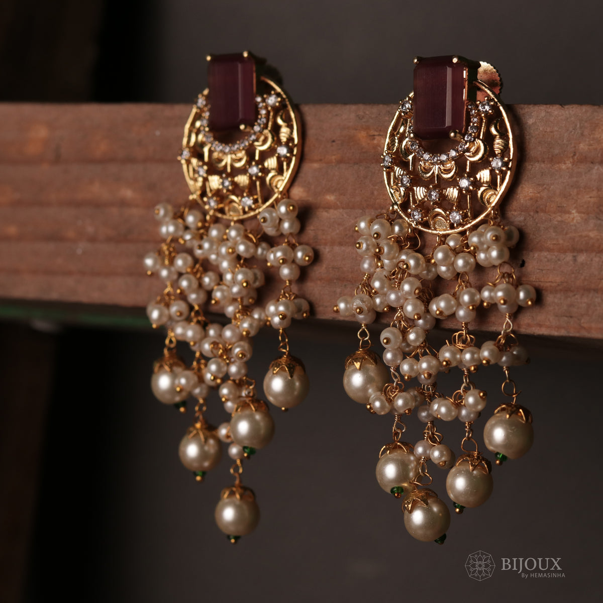 STARLITE TEARDROP STONE WITH PEARL DROP SEMI HANDMADE DANGLER ER80
